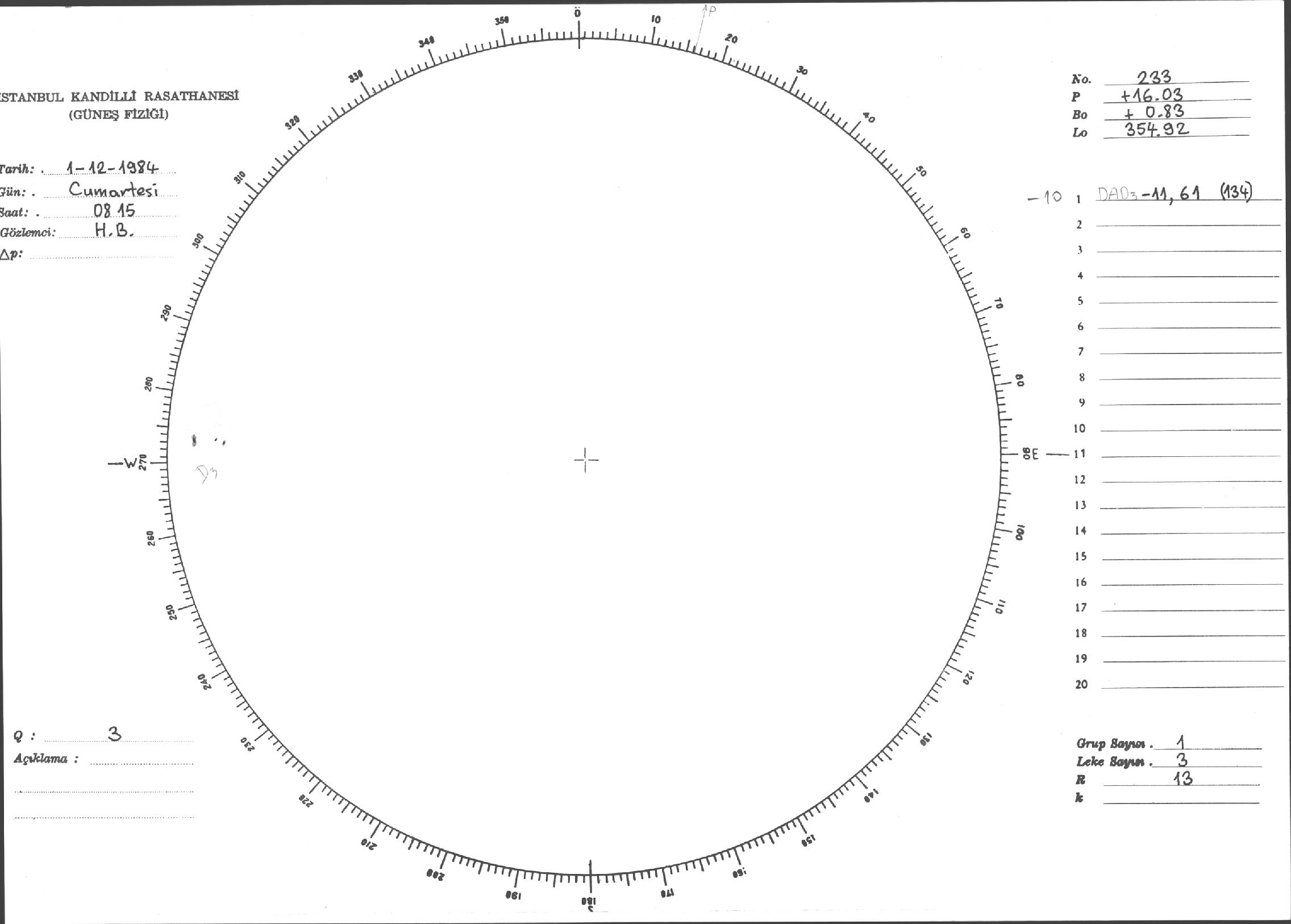 Güneş Lekesi Çizimi - 01.12.1984