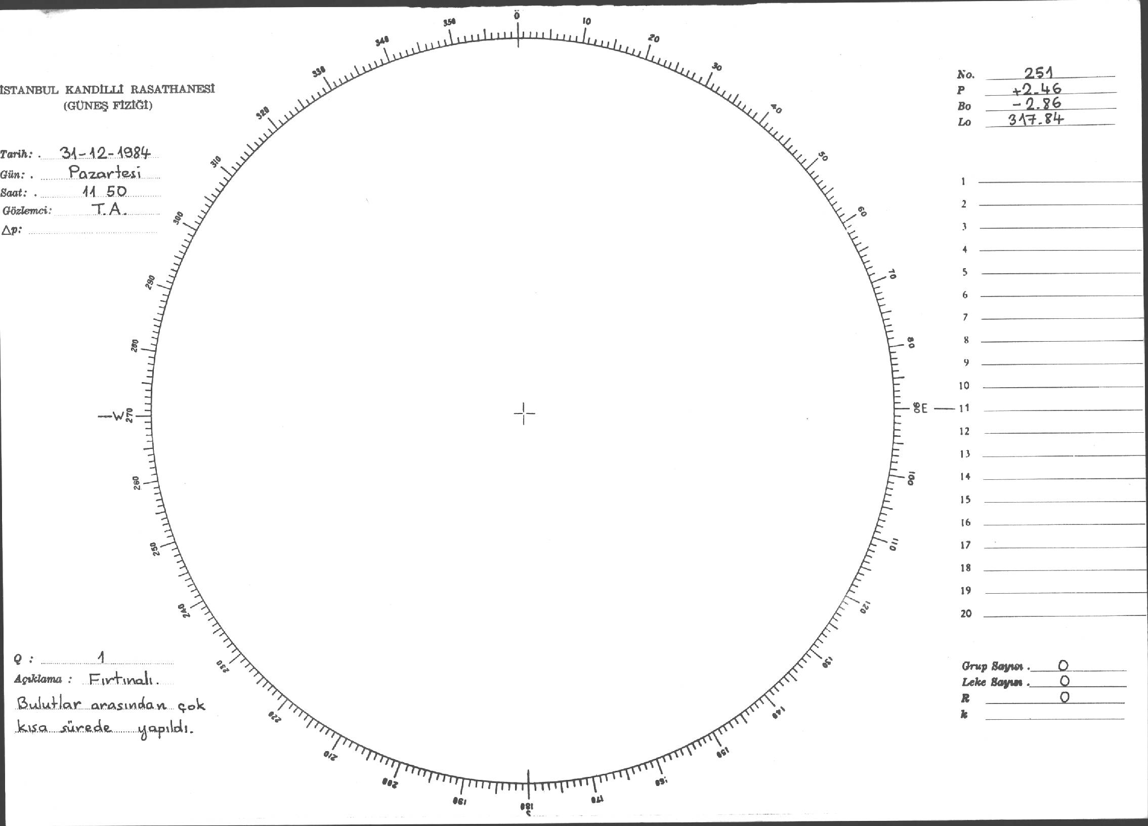 Güneş Lekesi Çizimi - 31.12.1984