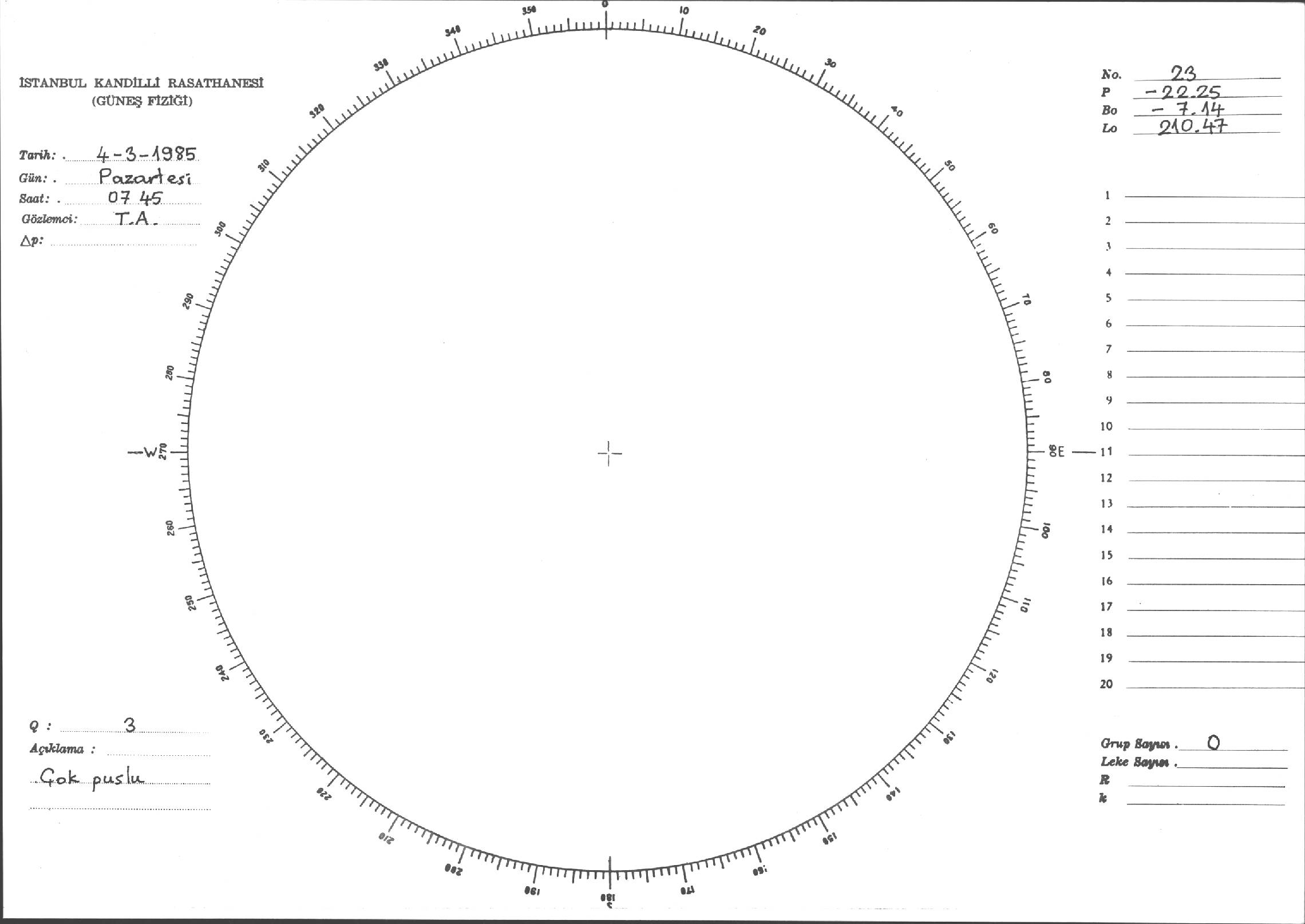 Güneş Lekesi Çizimi - 04.03.1985