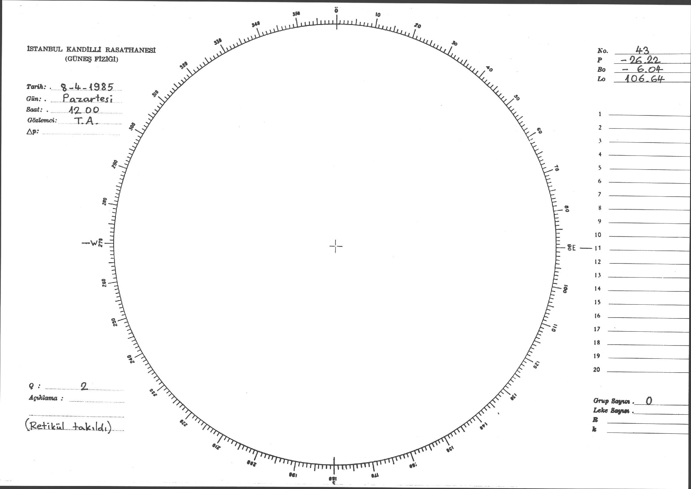 Güneş Lekesi Çizimi - 08.04.1985