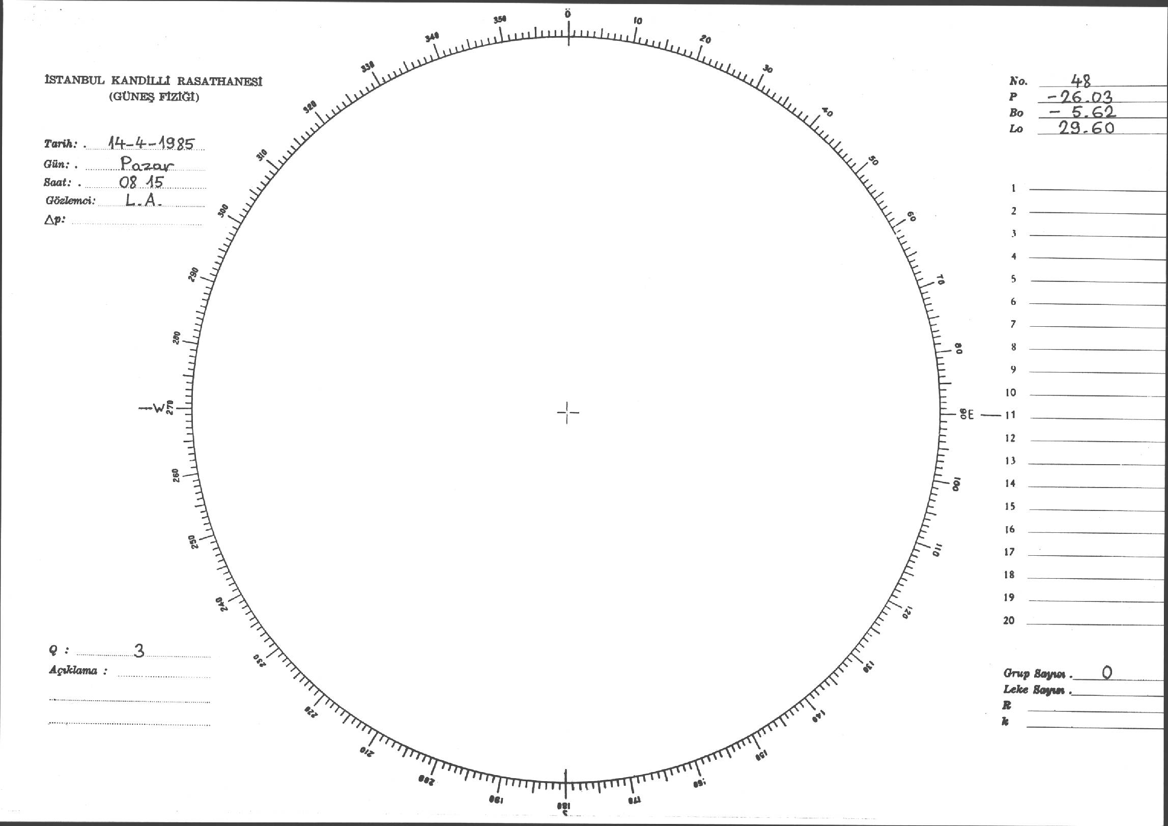 Güneş Lekesi Çizimi - 14.04.1985