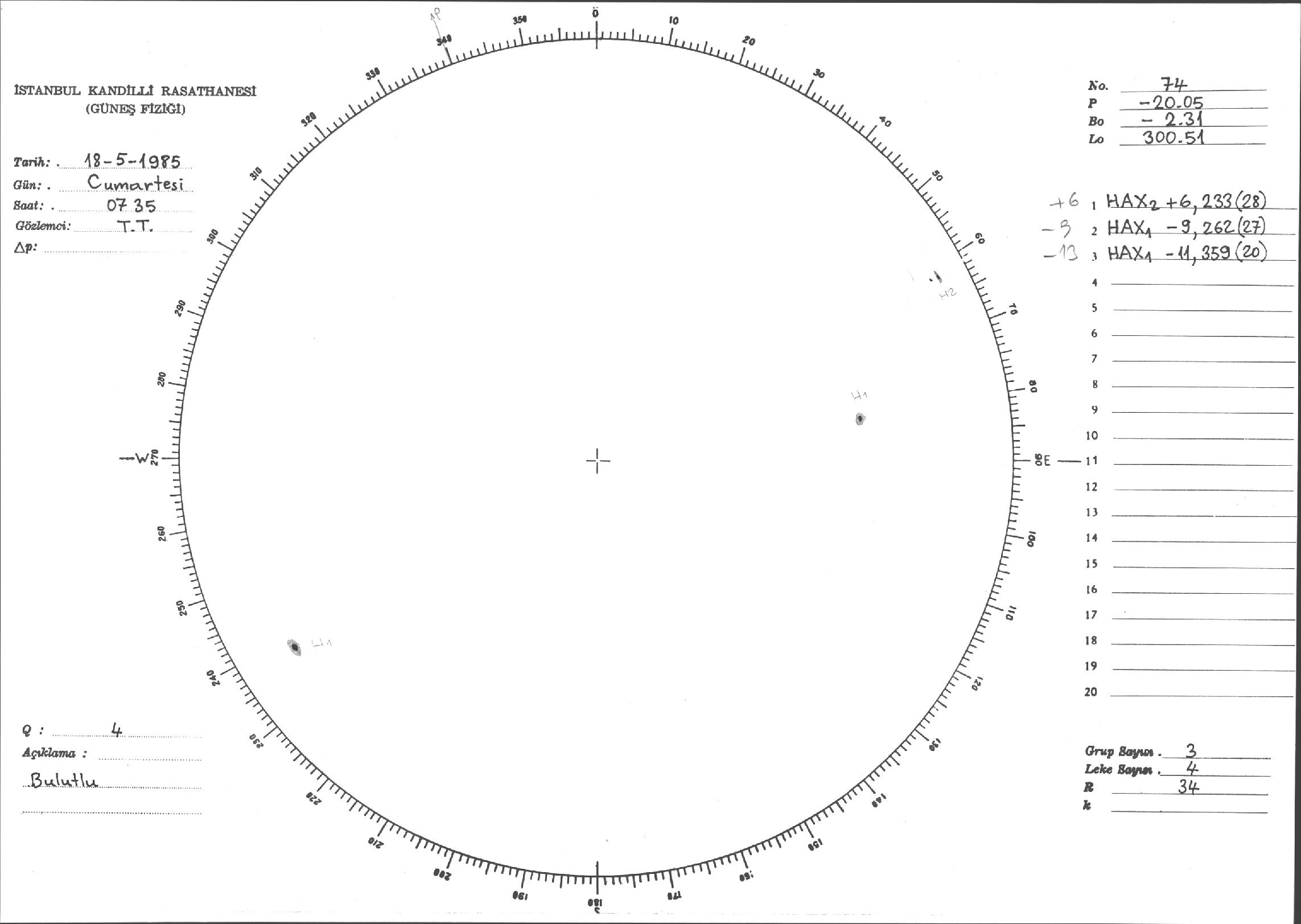 Güneş Lekesi Çizimi - 18.05.1985