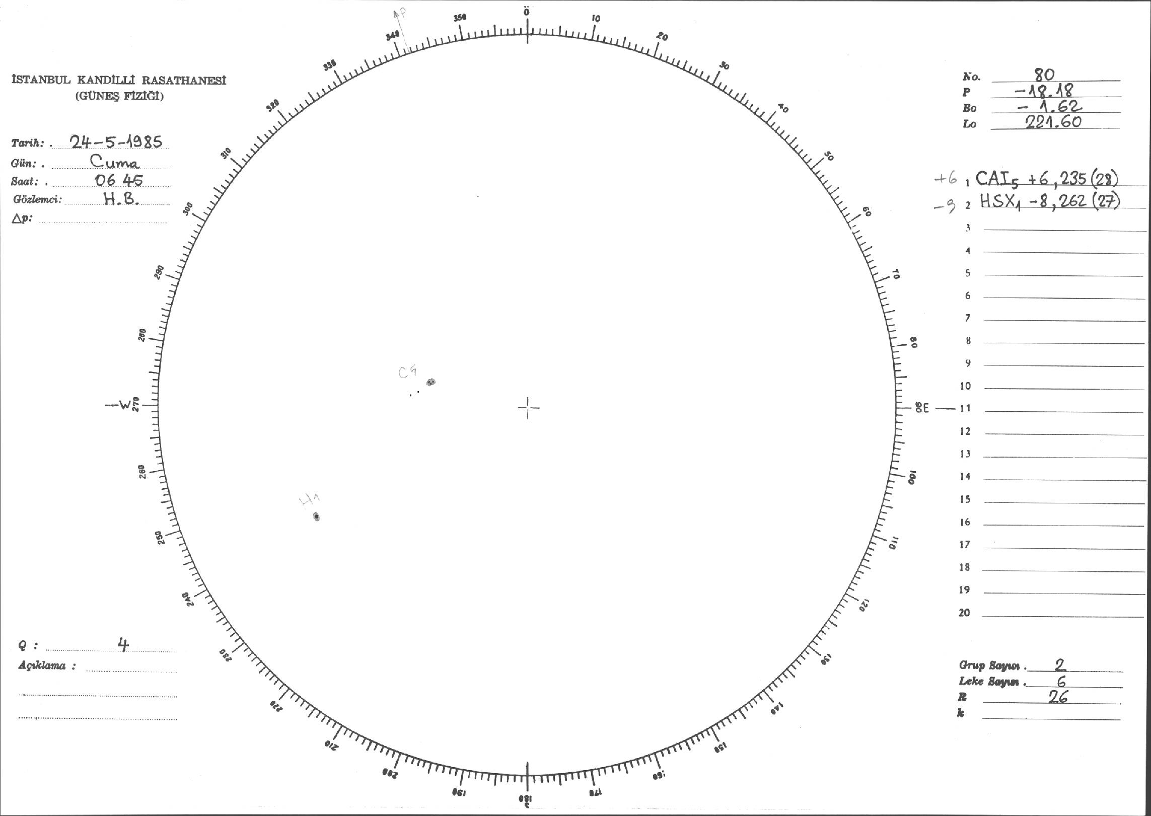 Güneş Lekesi Çizimi - 24.05.1985