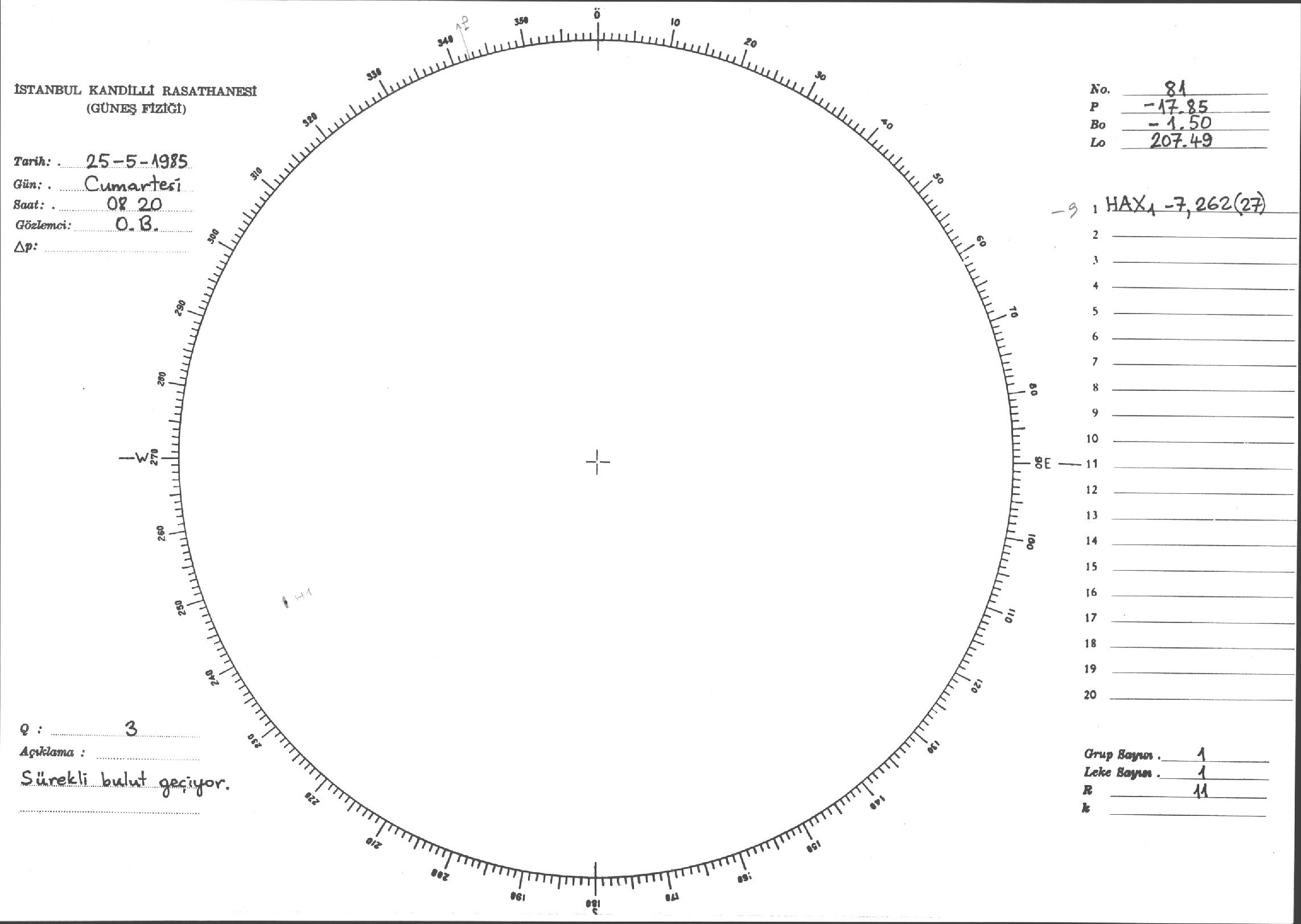 Güneş Lekesi Çizimi - 25.05.1985