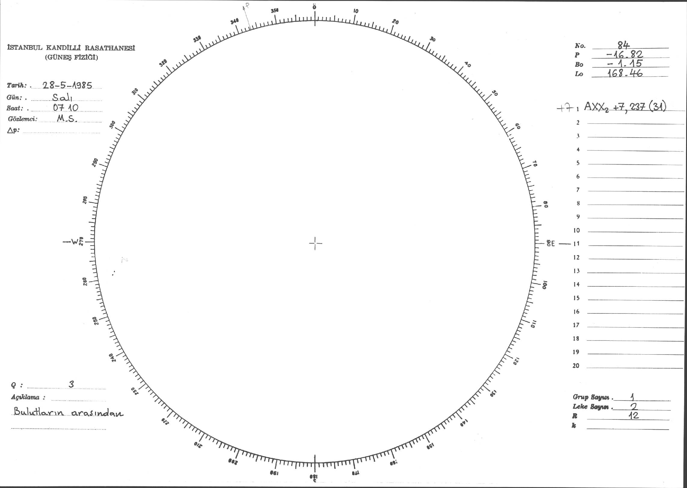 Güneş Lekesi Çizimi - 28.05.1985