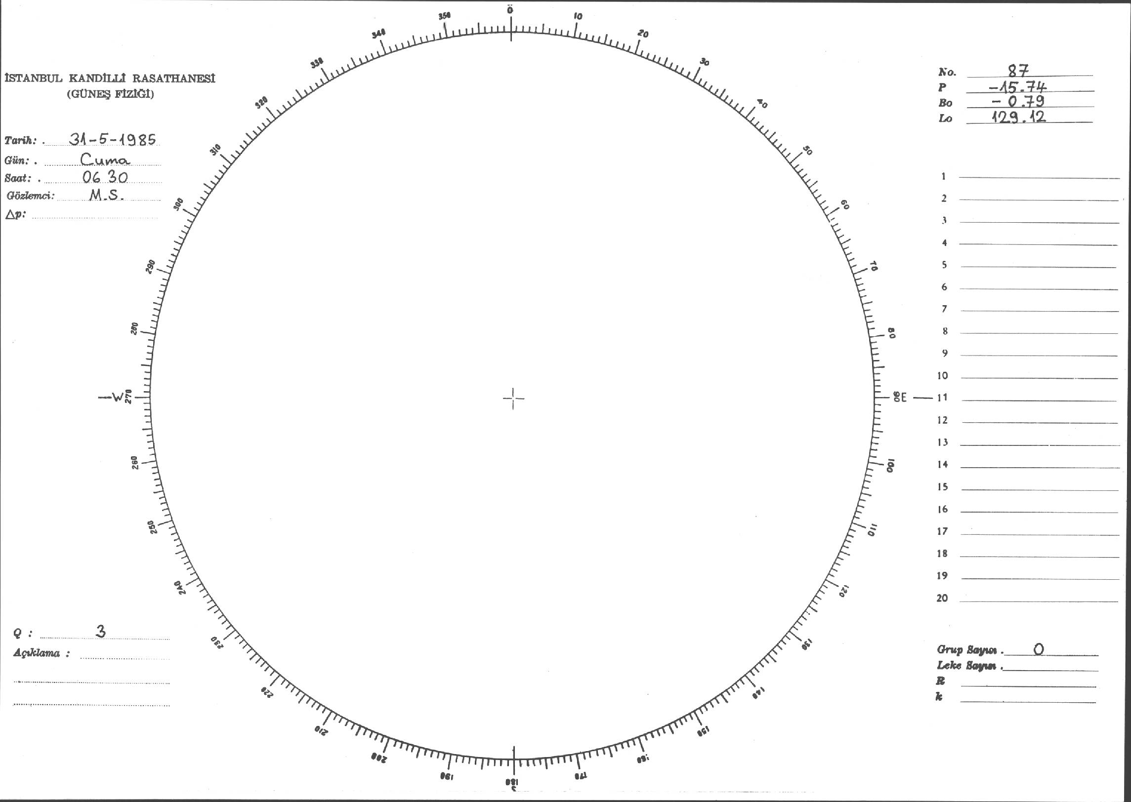Güneş Lekesi Çizimi - 31.05.1985