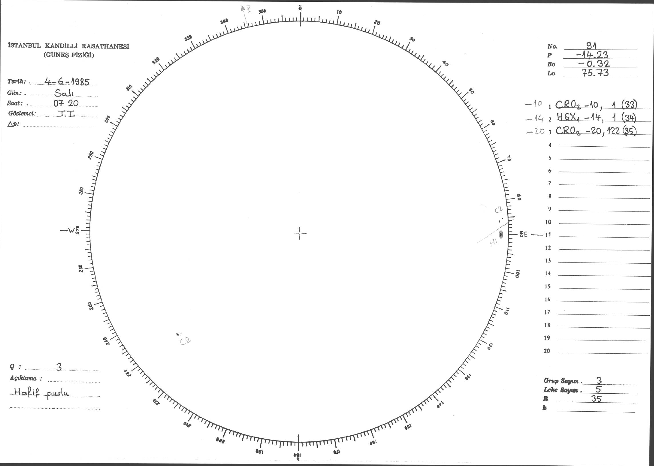 Güneş Lekesi Çizimi - 04.06.1985