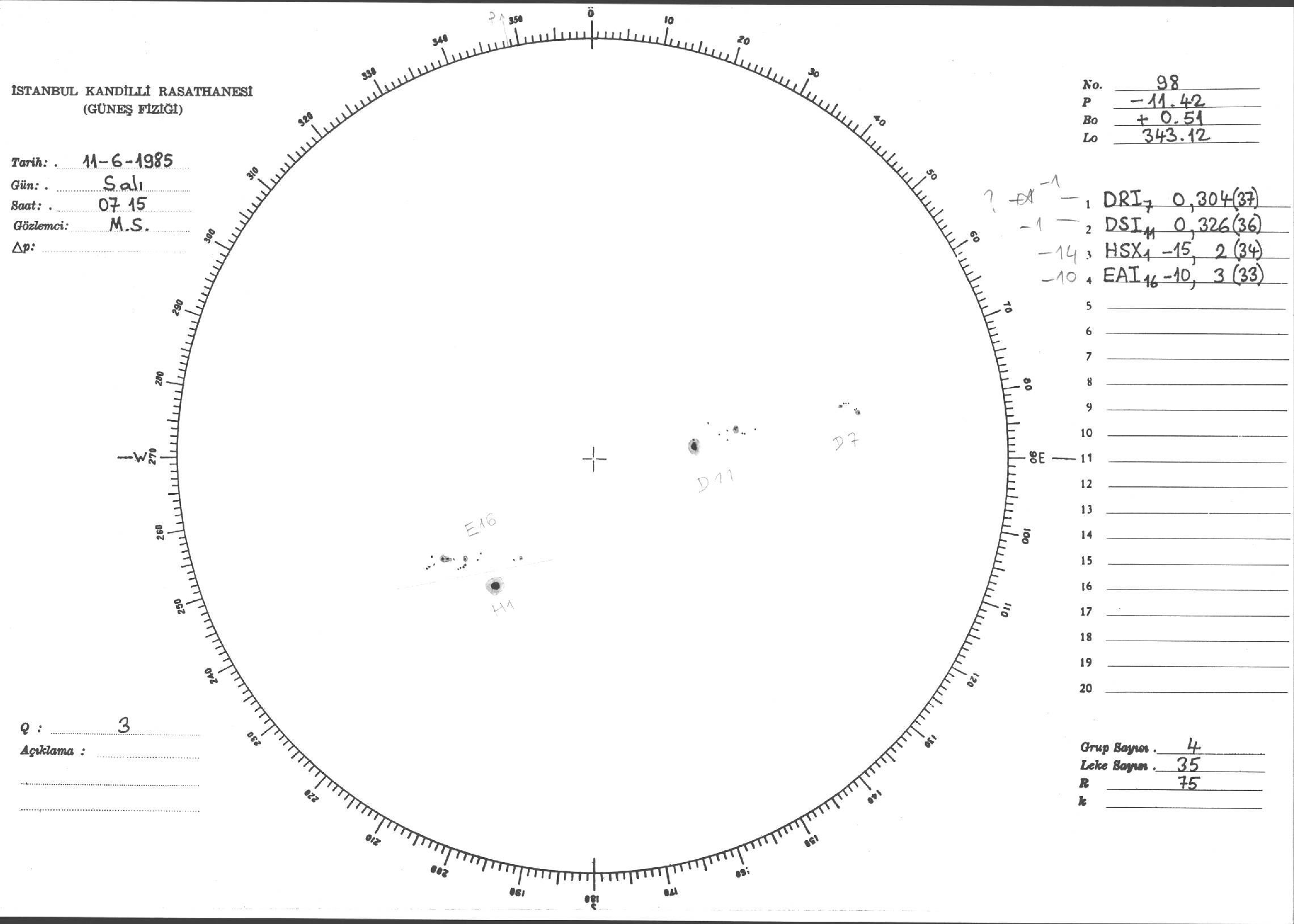 Güneş Lekesi Çizimi - 11.06.1985