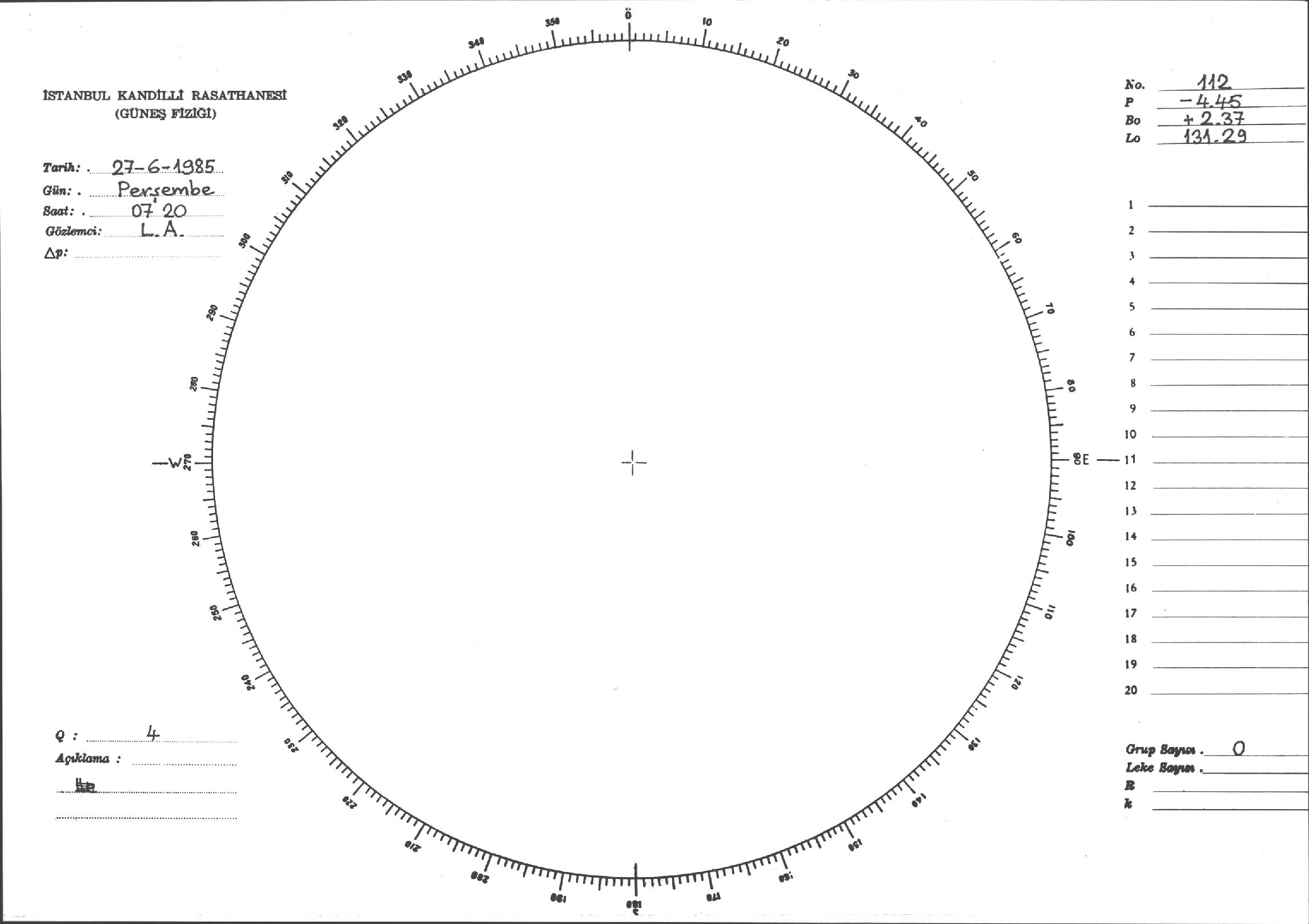 Güneş Lekesi Çizimi - 27.06.1985