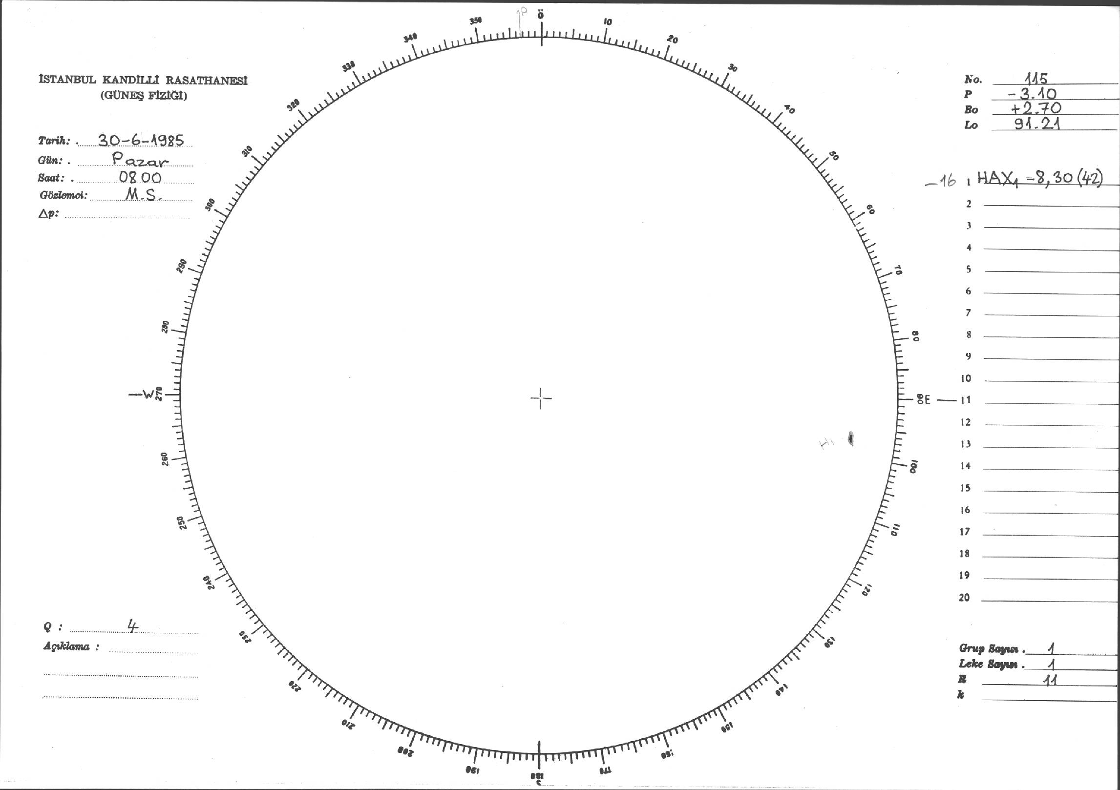 Güneş Lekesi Çizimi - 30.06.1985