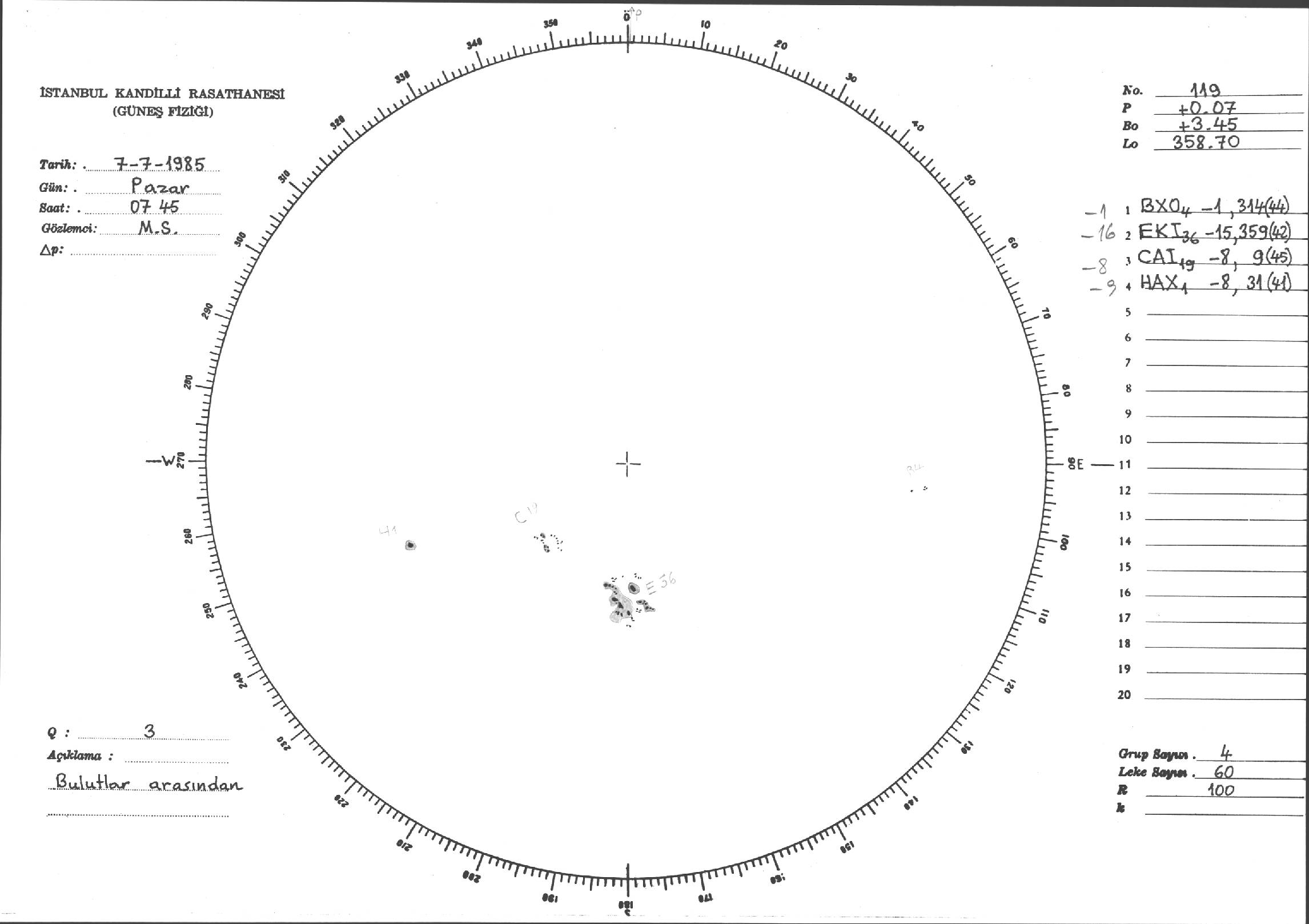 Güneş Lekesi Çizimi - 07.07.1985