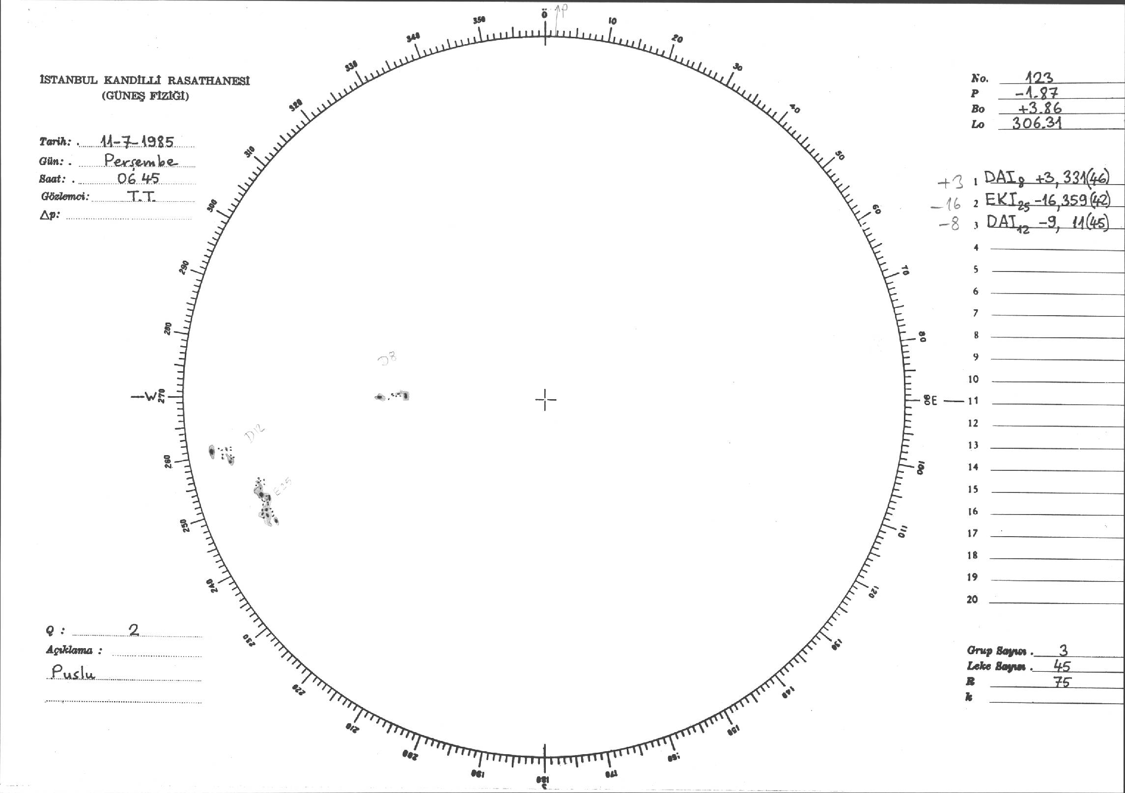 Güneş Lekesi Çizimi - 11.07.1985