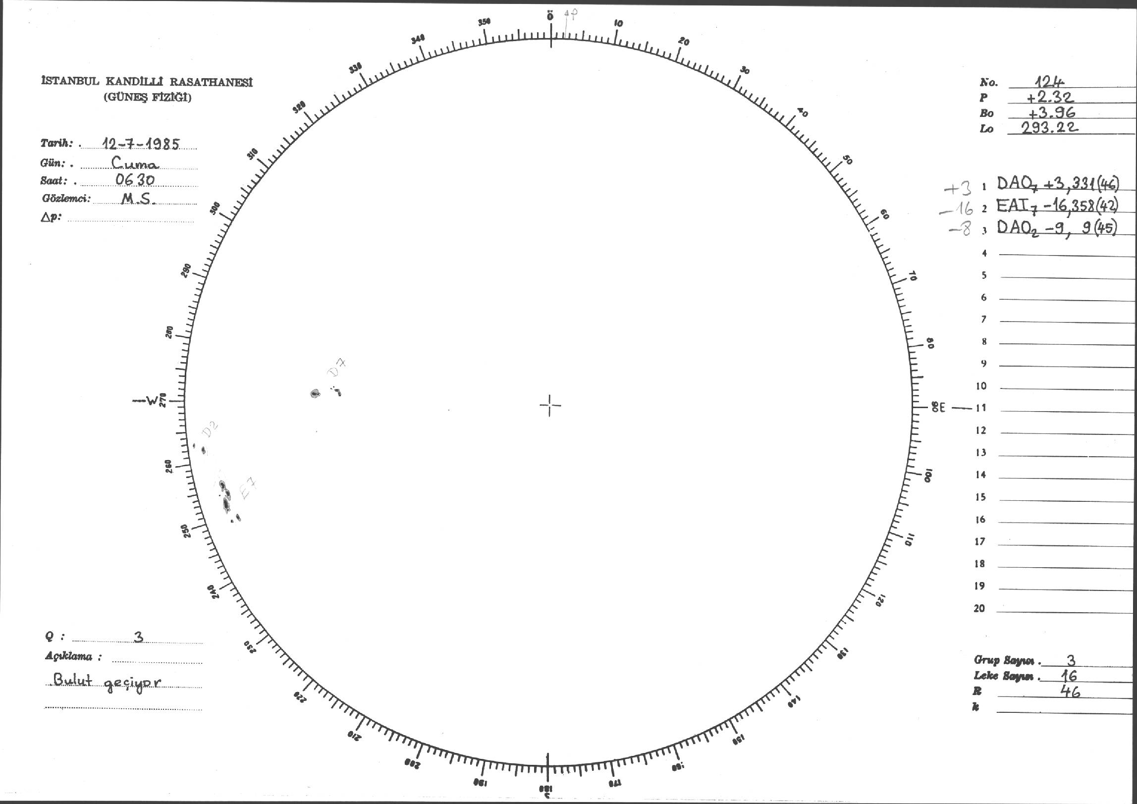 Güneş Lekesi Çizimi - 12.07.1985