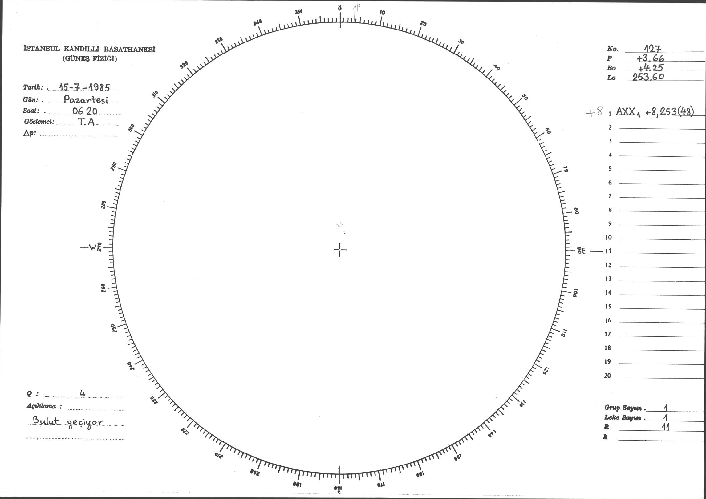 Güneş Lekesi Çizimi - 15.07.1985