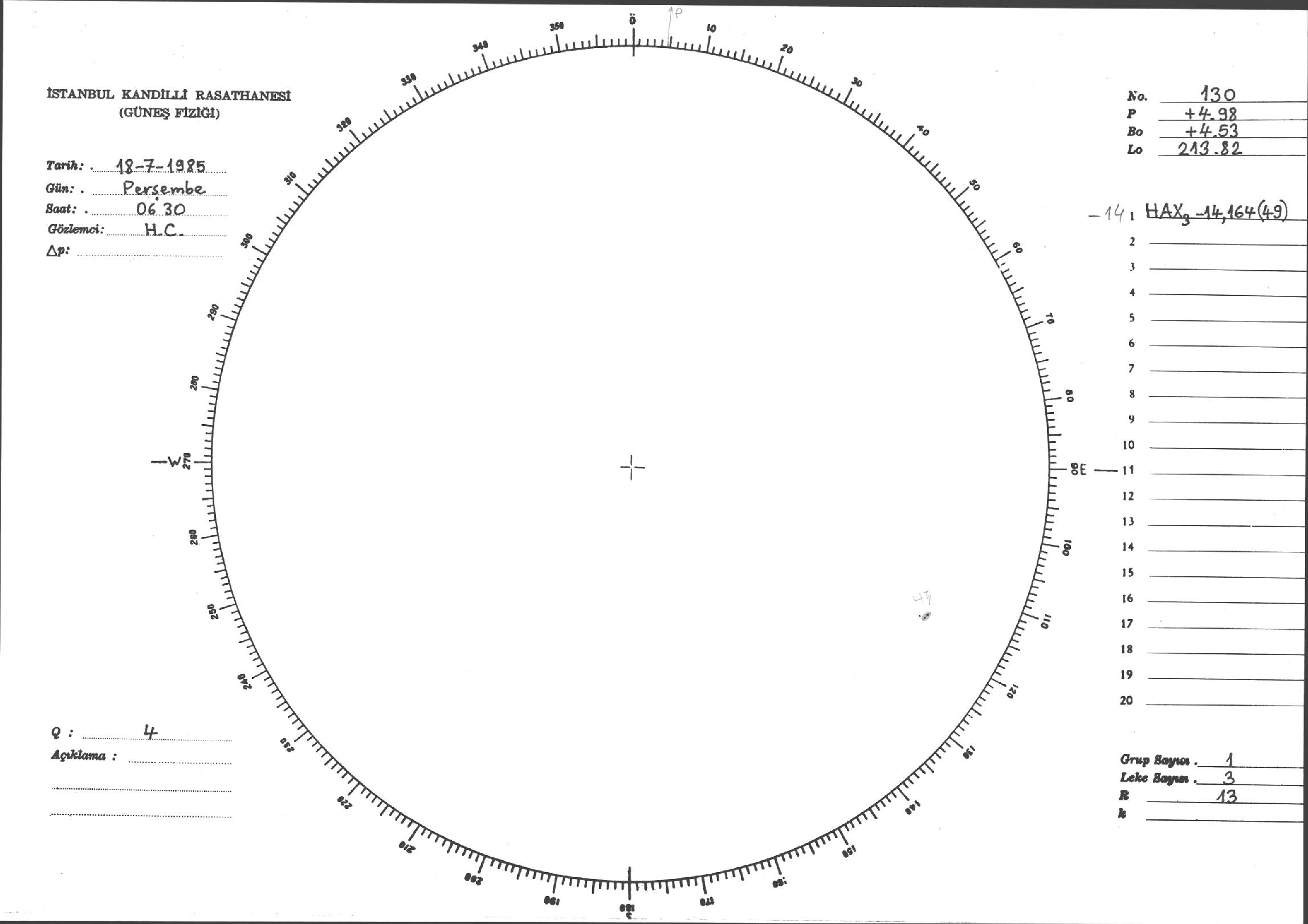 Güneş Lekesi Çizimi - 18.07.1985