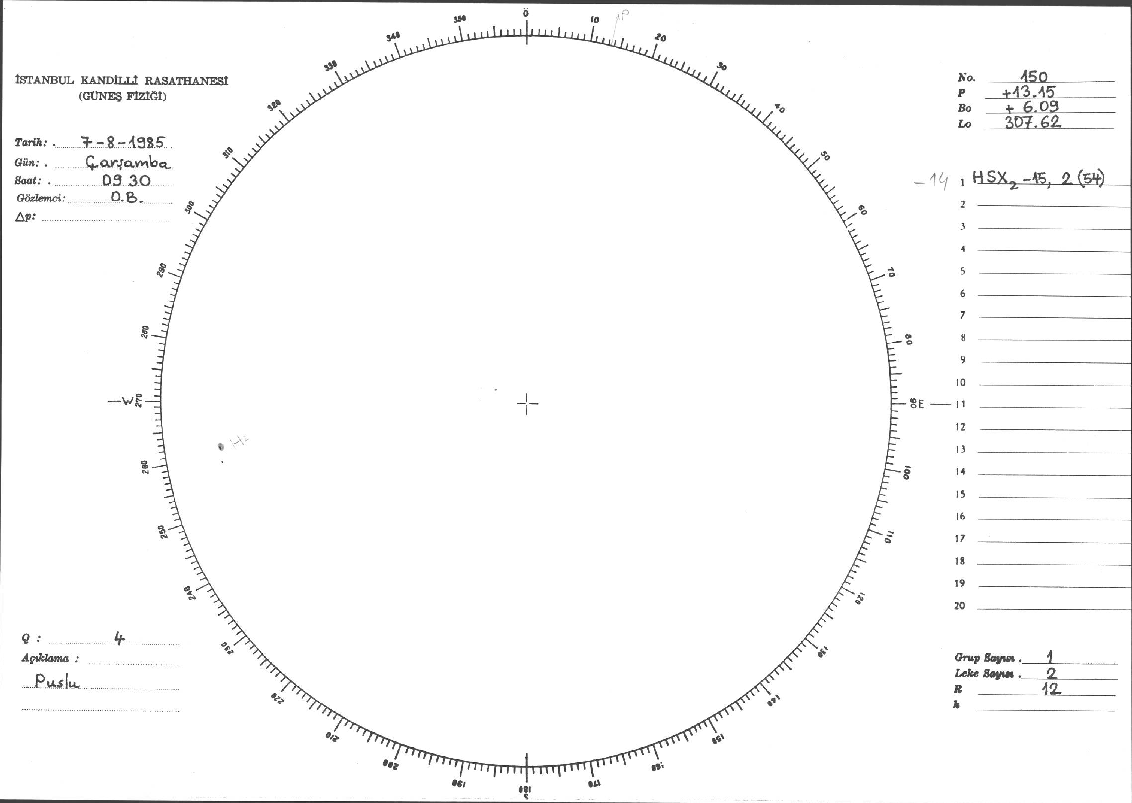 Güneş Lekesi Çizimi - 07.08.1985