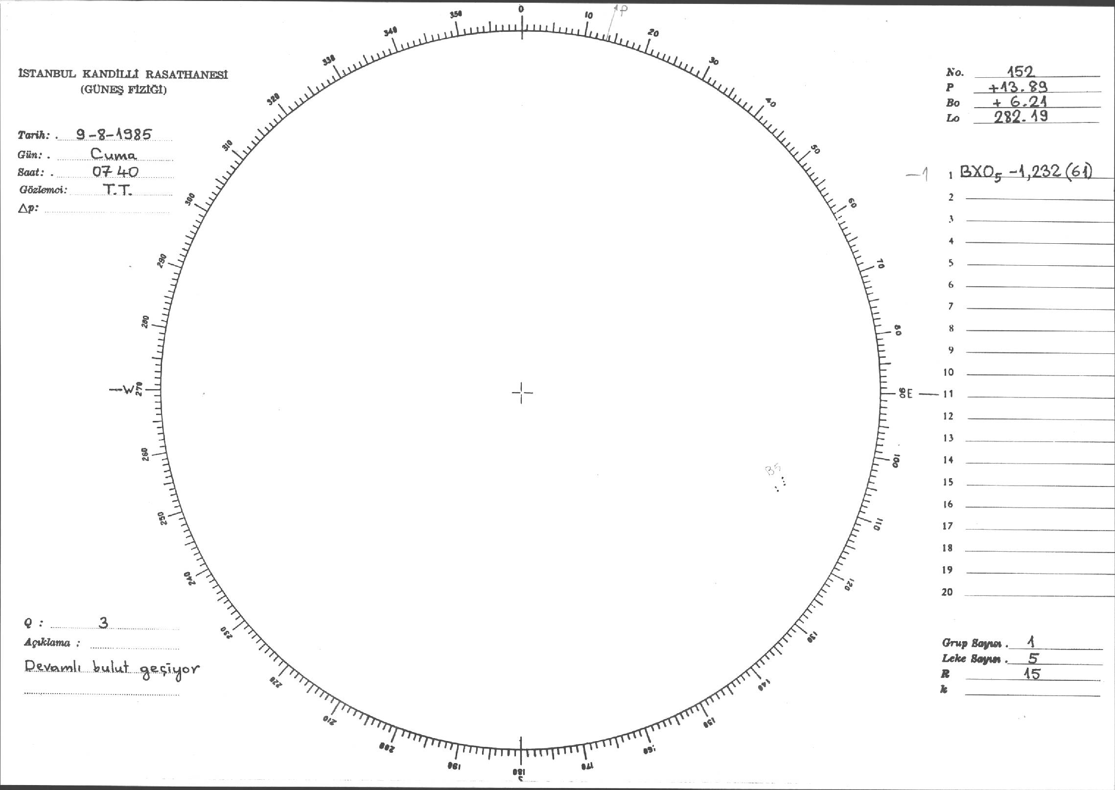 Güneş Lekesi Çizimi - 09.08.1985