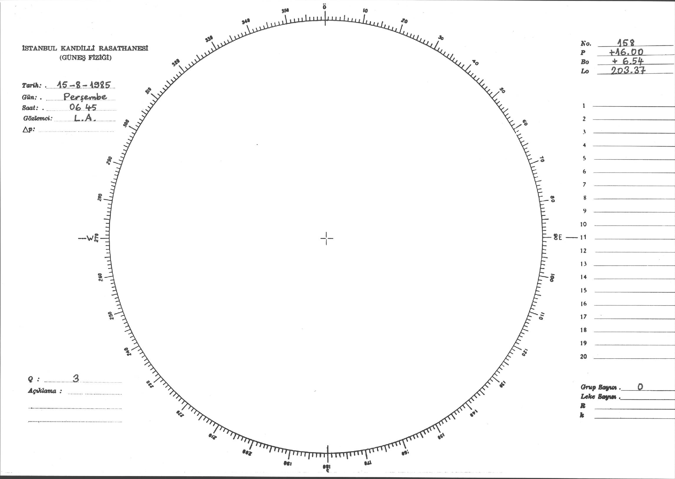 Güneş Lekesi Çizimi - 15.08.1985