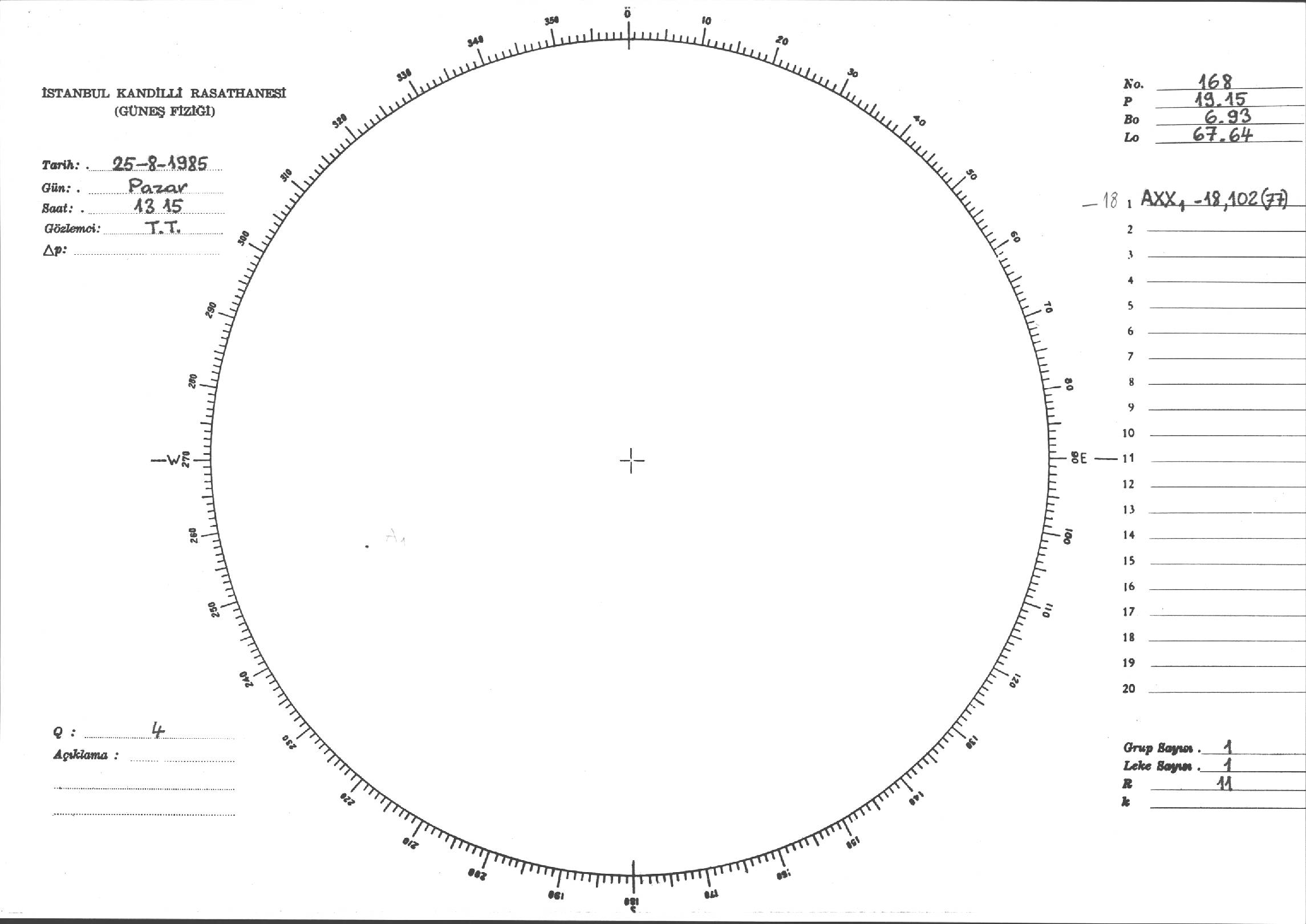 Güneş Lekesi Çizimi - 25.08.1985