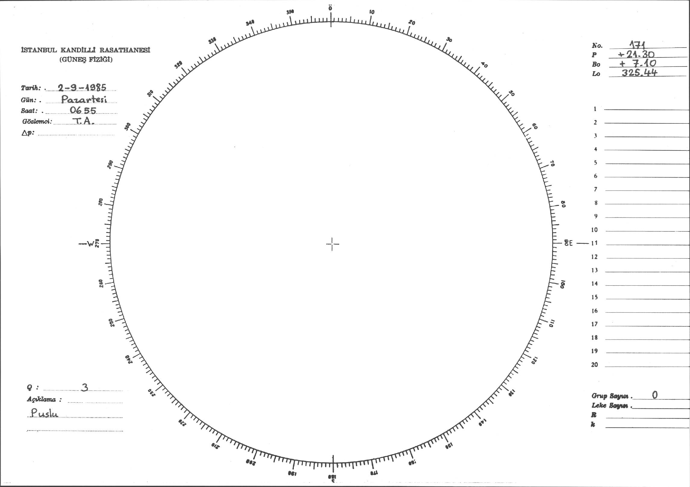 Güneş Lekesi Çizimi - 02.09.1985
