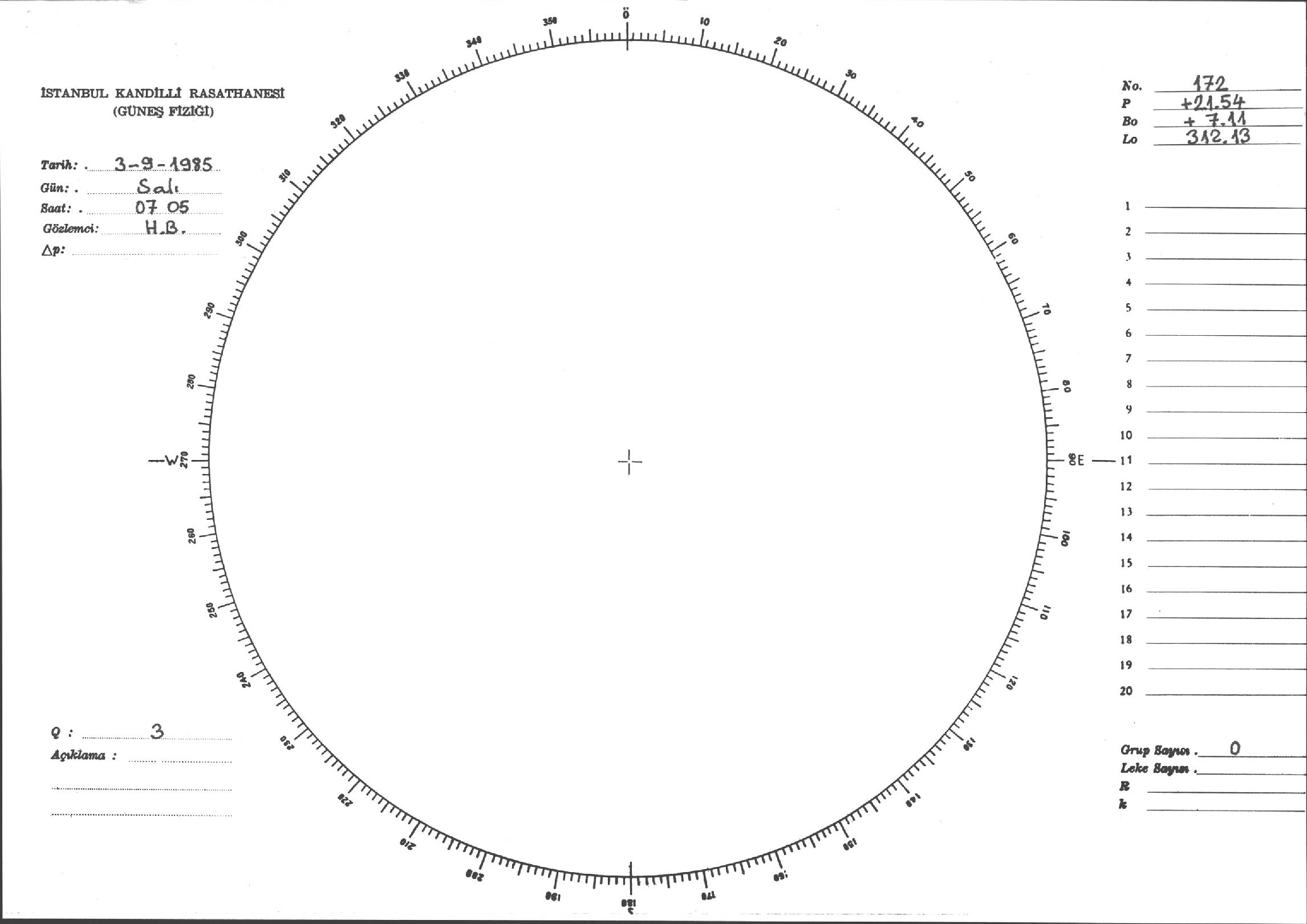 Güneş Lekesi Çizimi - 03.09.1985