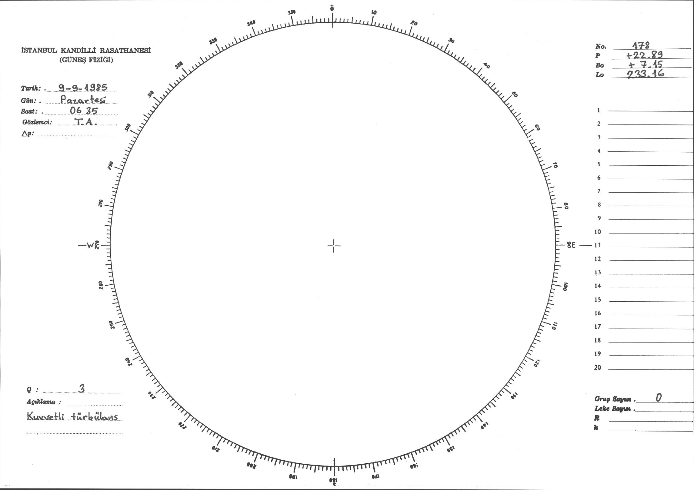 Güneş Lekesi Çizimi - 09.09.1985