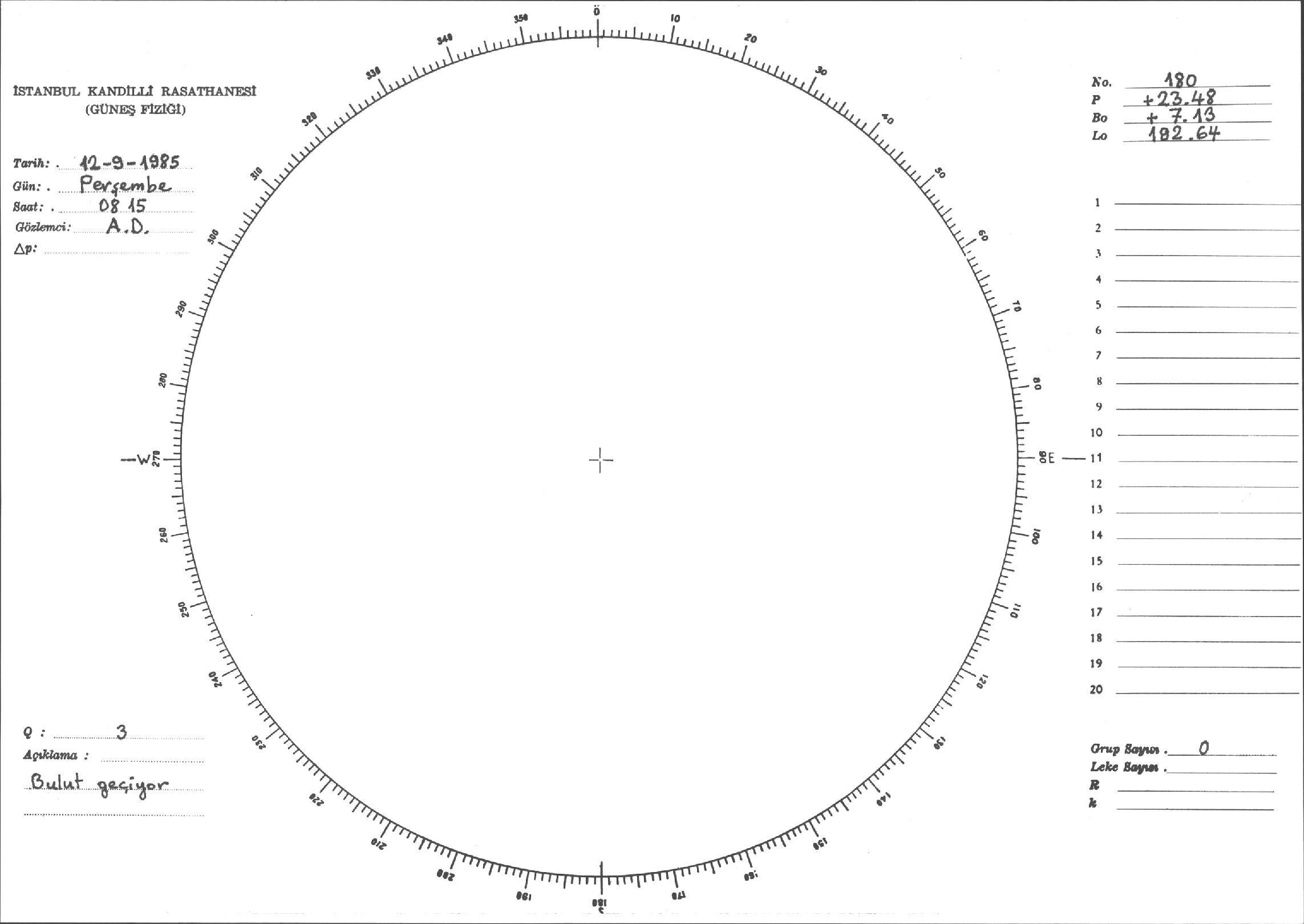 Güneş Lekesi Çizimi - 12.09.1985