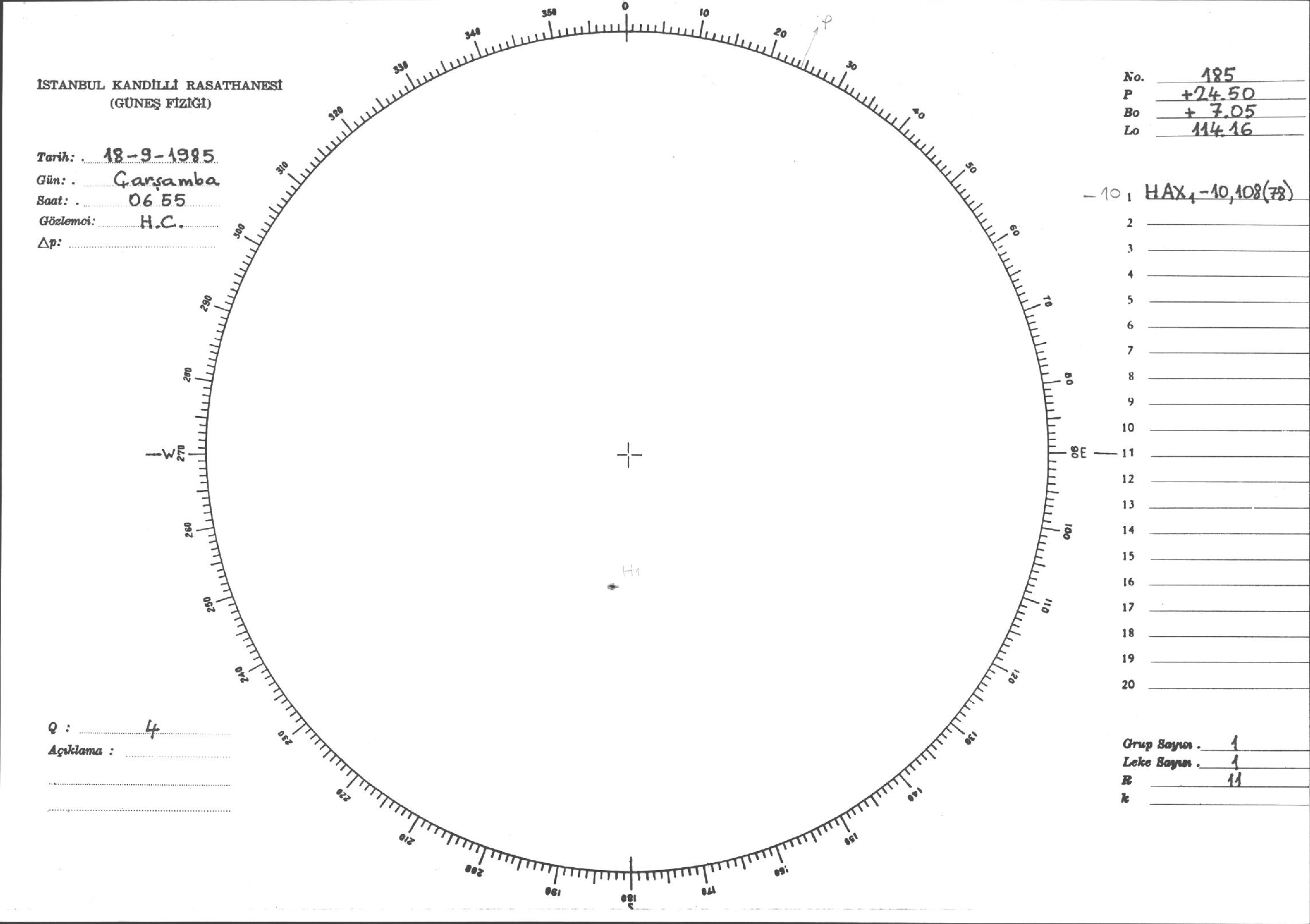 Güneş Lekesi Çizimi - 18.09.1985