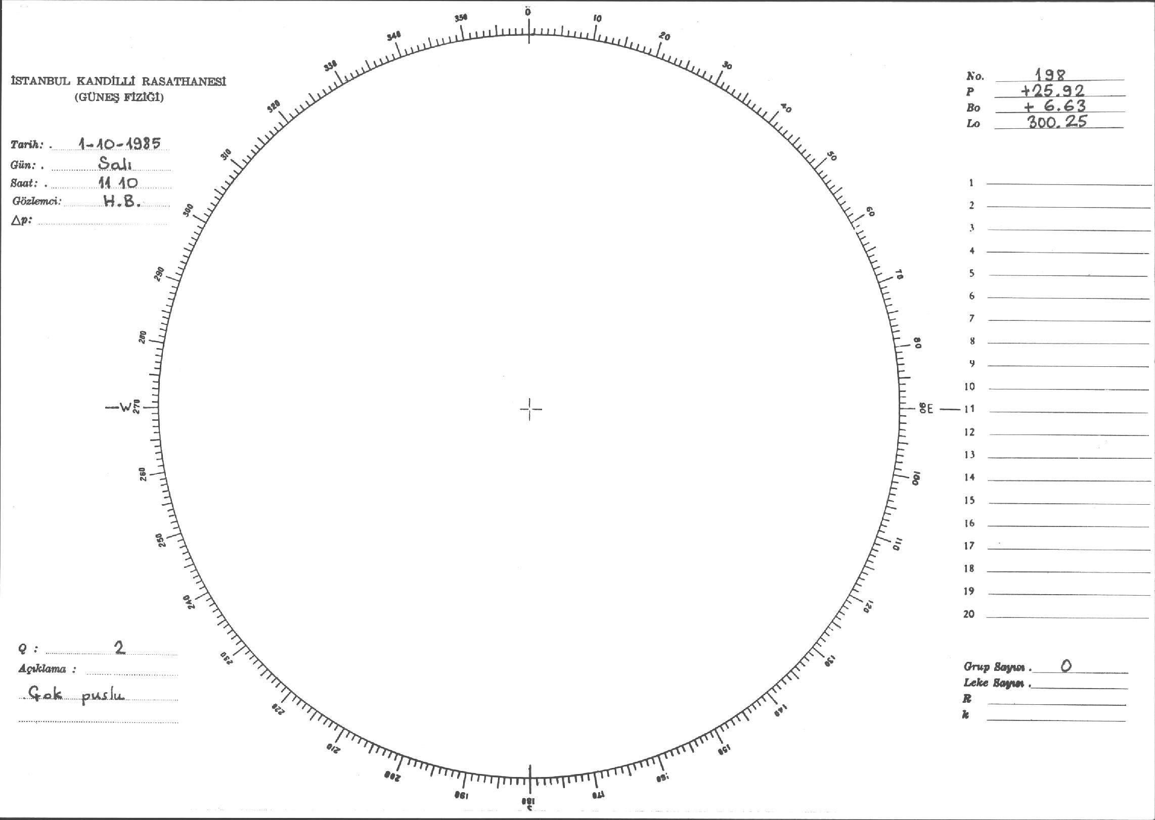 Güneş Lekesi Çizimi - 01.10.1985