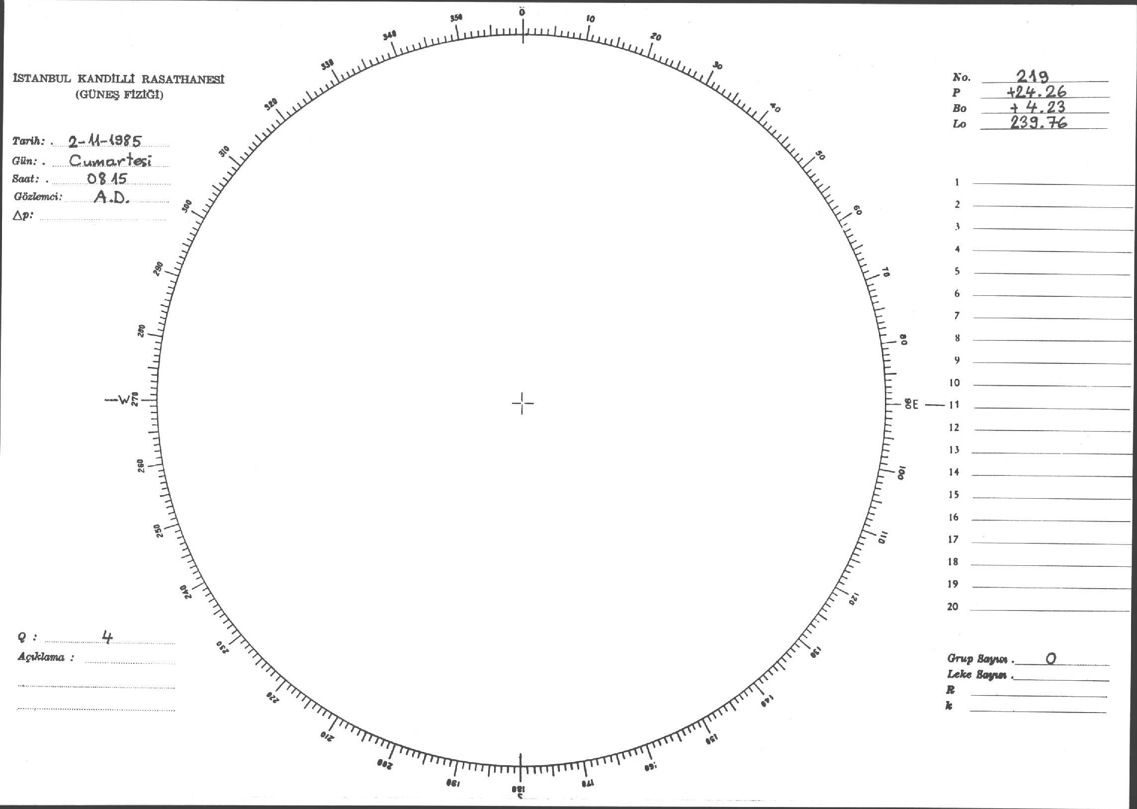 Güneş Lekesi Çizimi - 02.11.1985
