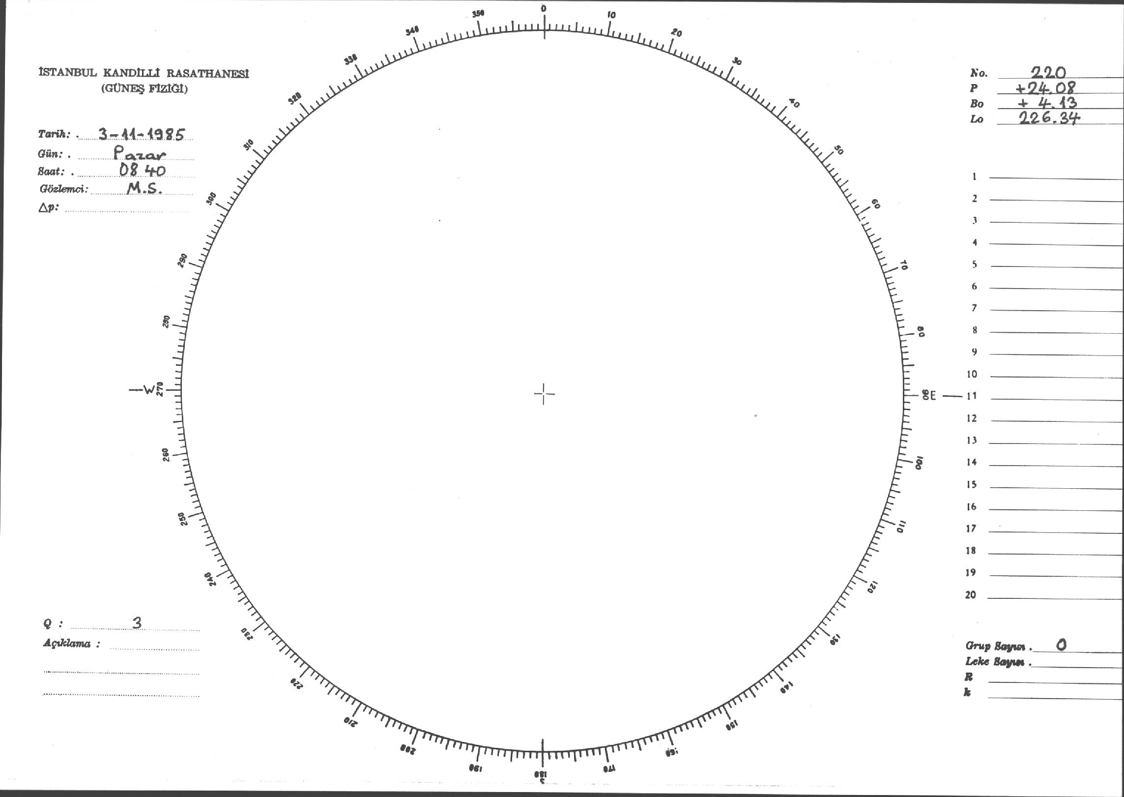 Güneş Lekesi Çizimi - 03.11.1985