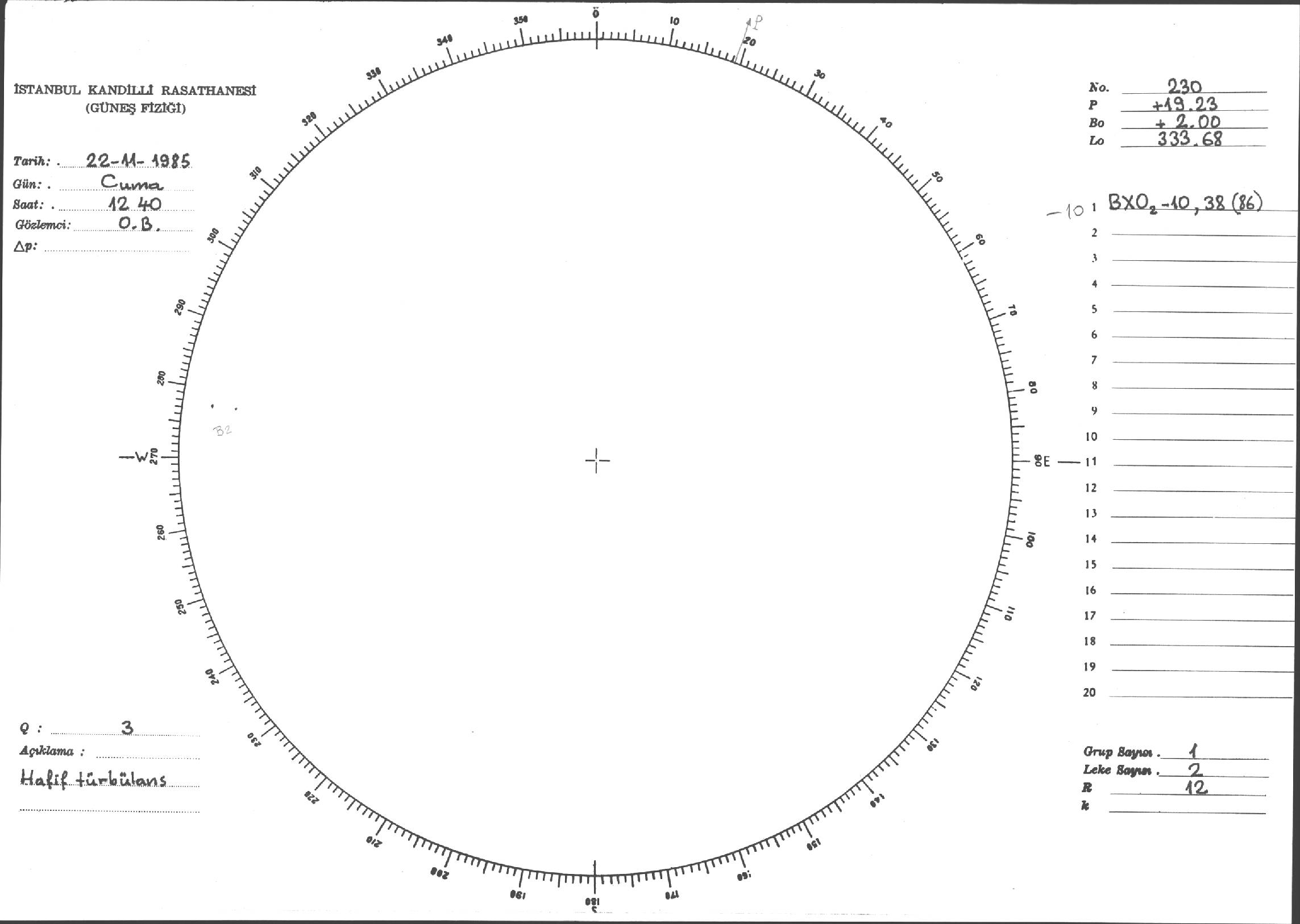 Güneş Lekesi Çizimi - 22.11.1985