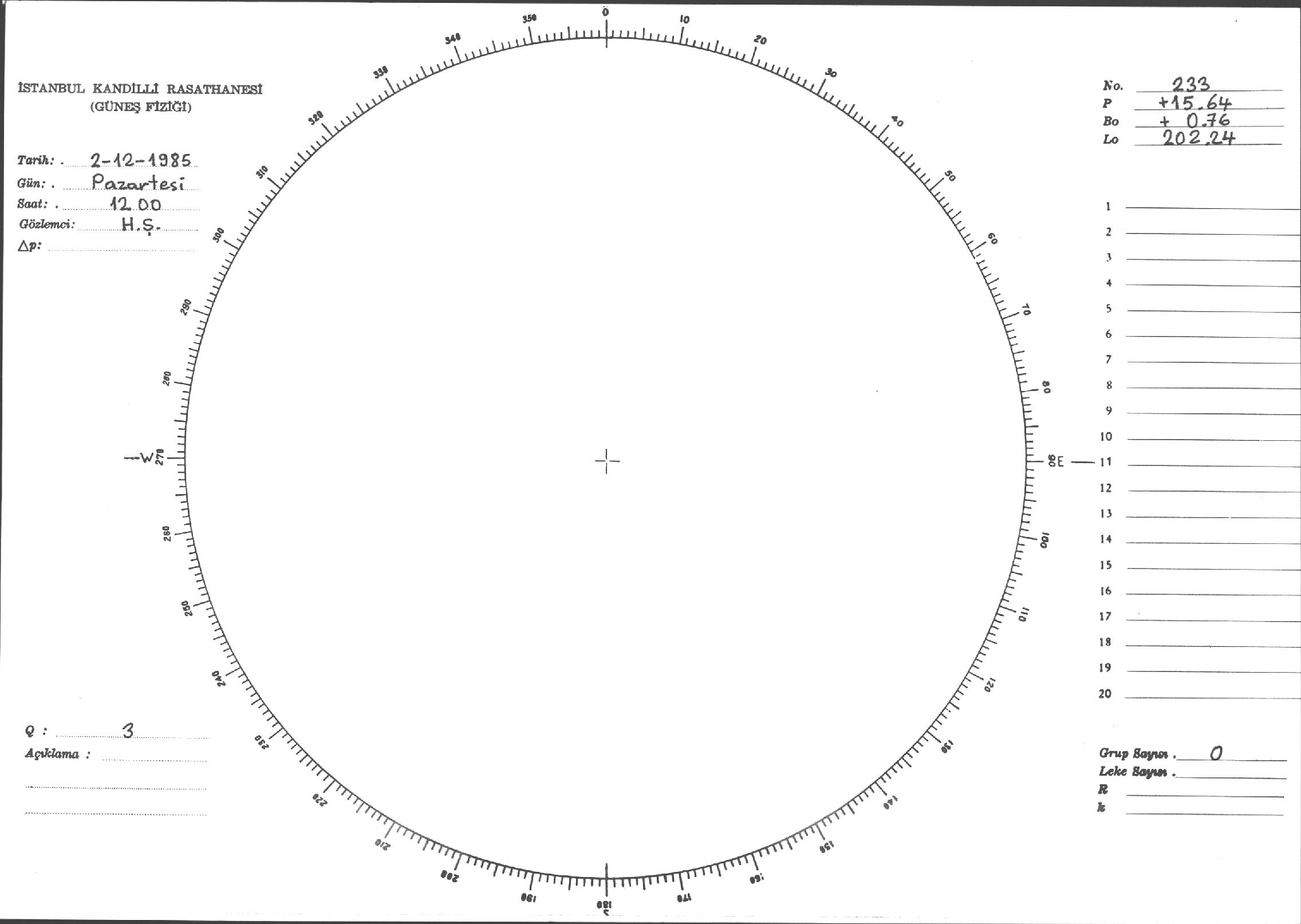 Güneş Lekesi Çizimi - 02.12.1985