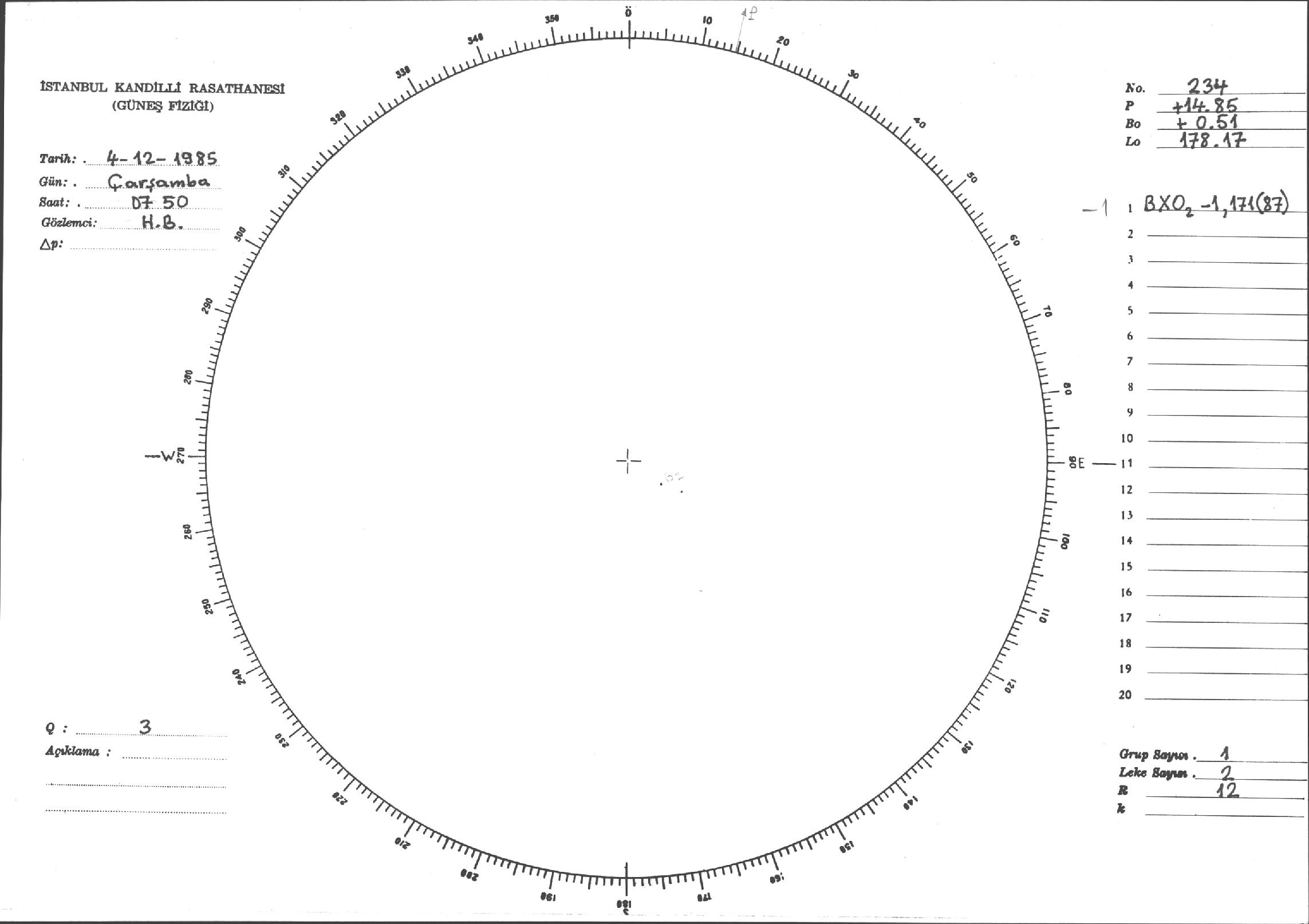 Güneş Lekesi Çizimi - 04.12.1985