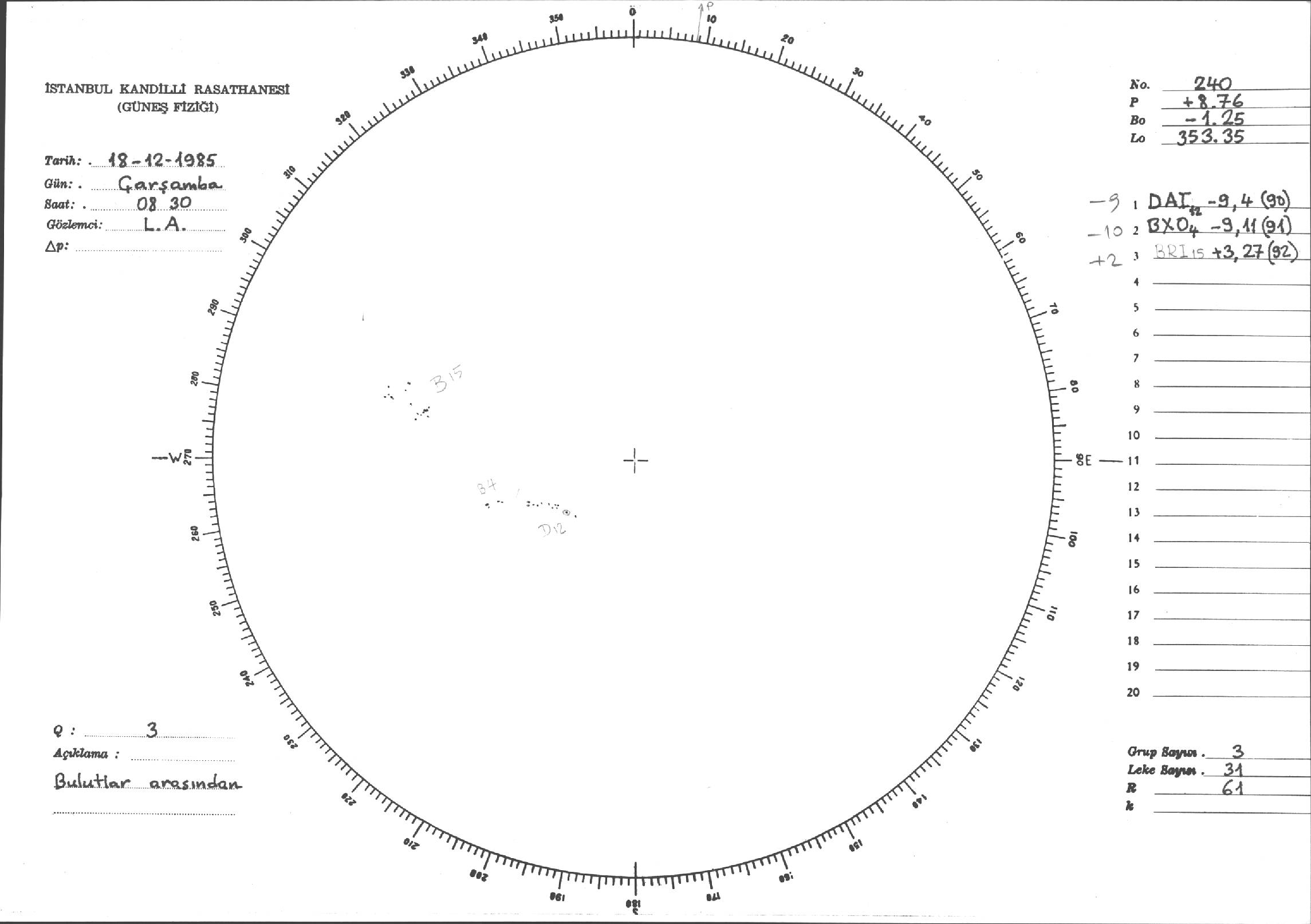 Güneş Lekesi Çizimi - 18.12.1985