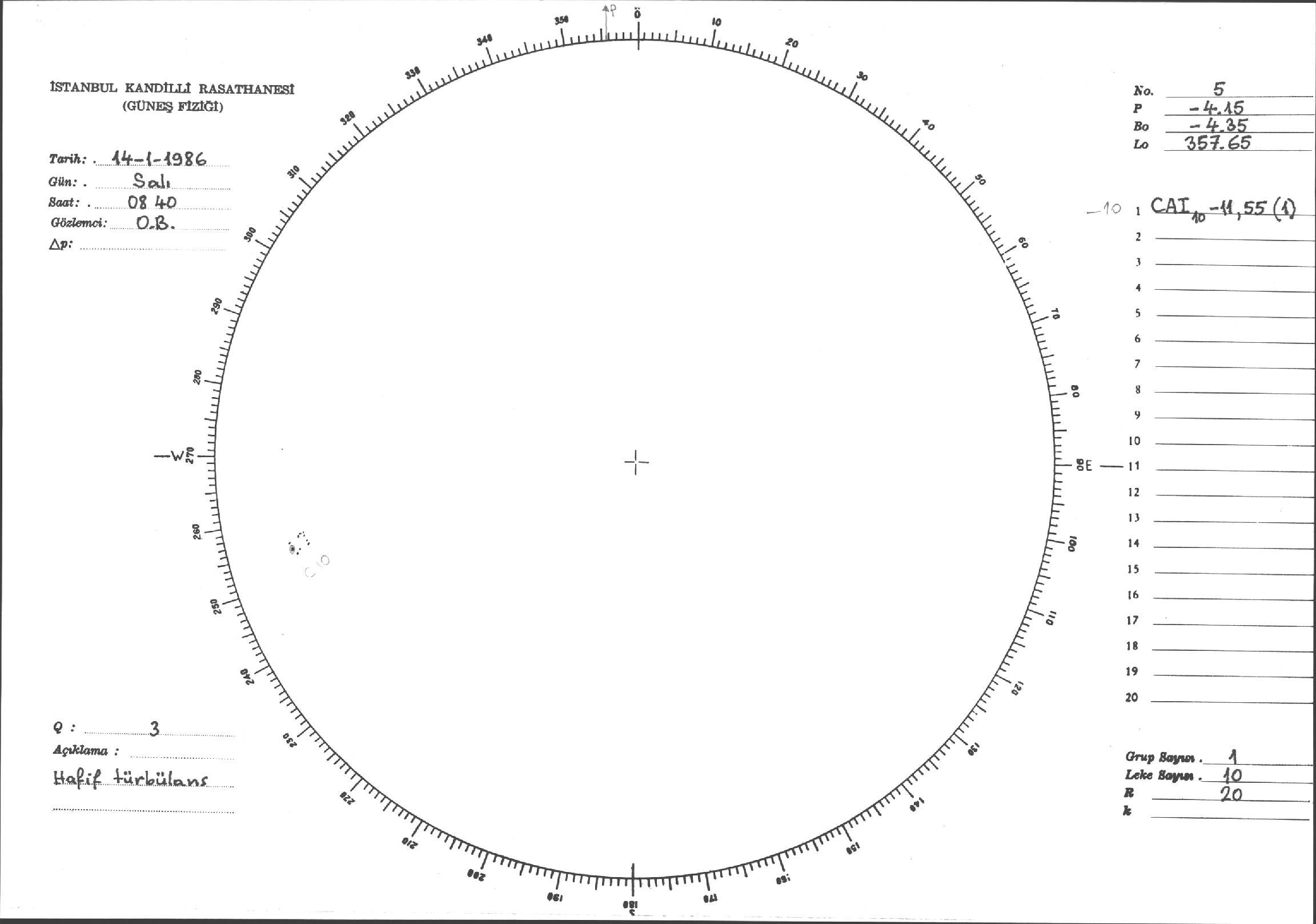 Güneş Lekesi Çizimi - 14.01.1986