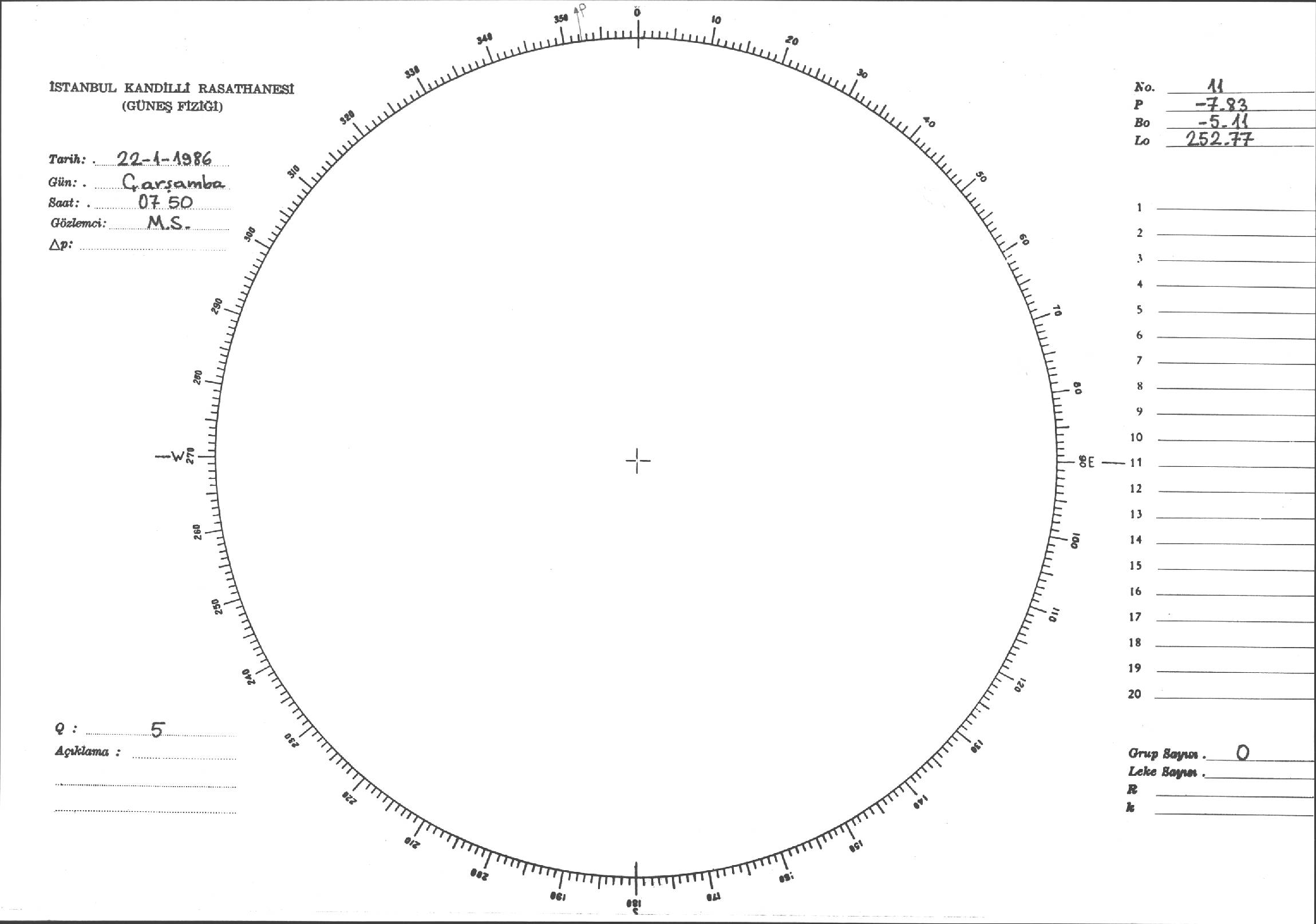 Güneş Lekesi Çizimi - 22.01.1986