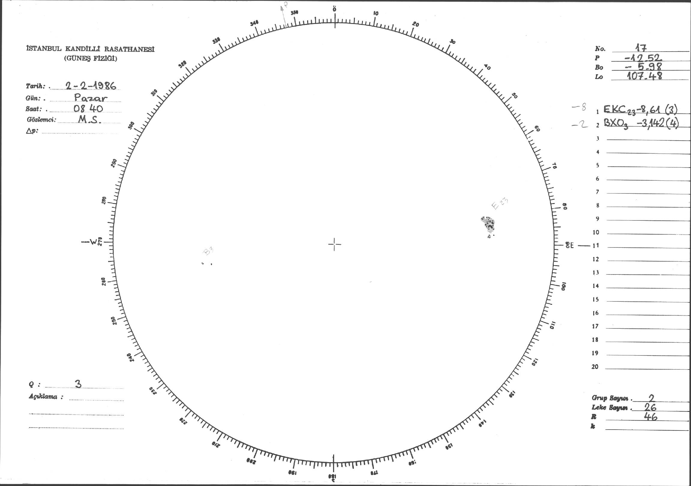 Güneş Lekesi Çizimi - 02.02.1986