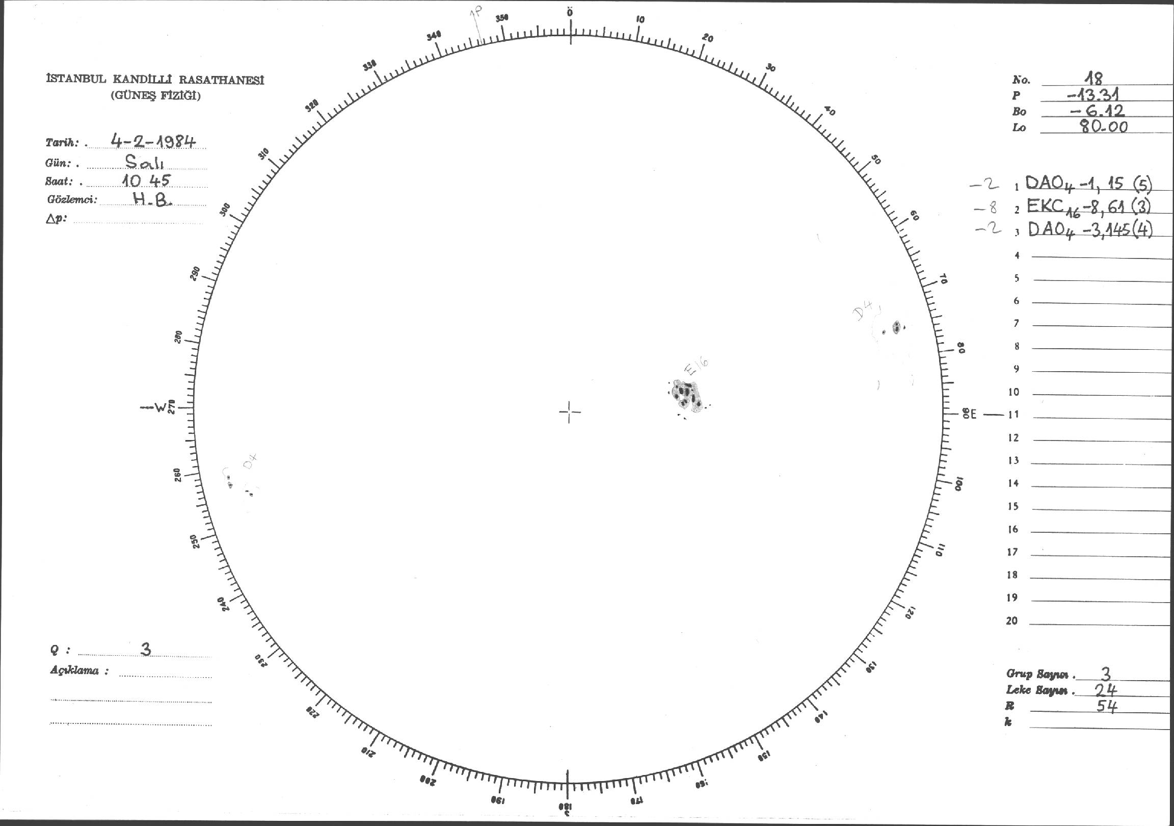 Güneş Lekesi Çizimi - 04.02.1986