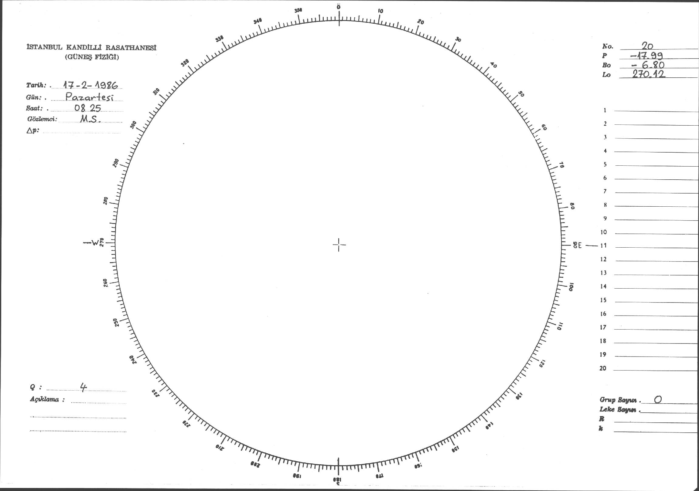 Güneş Lekesi Çizimi - 17.02.1986