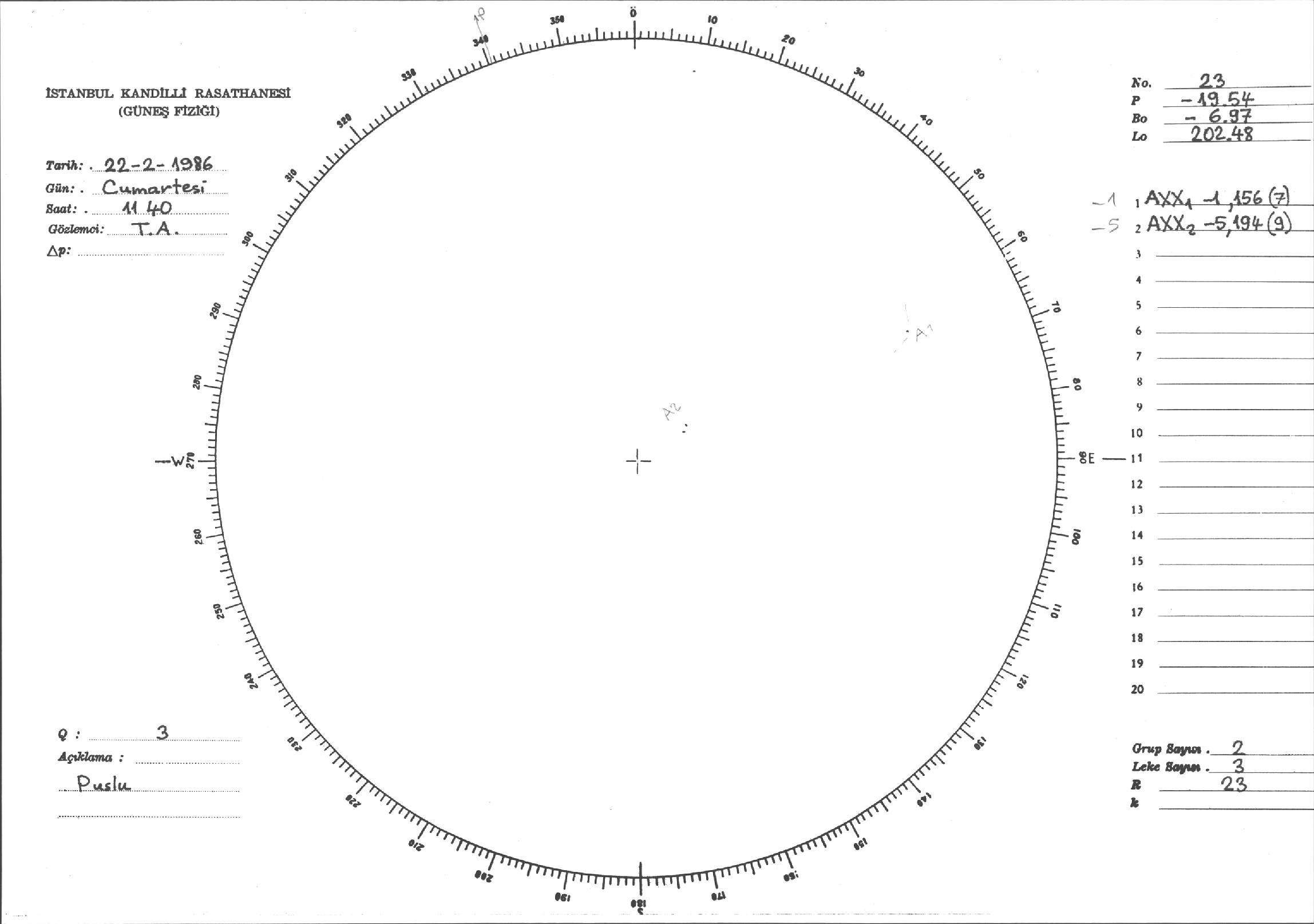Güneş Lekesi Çizimi - 22.02.1986