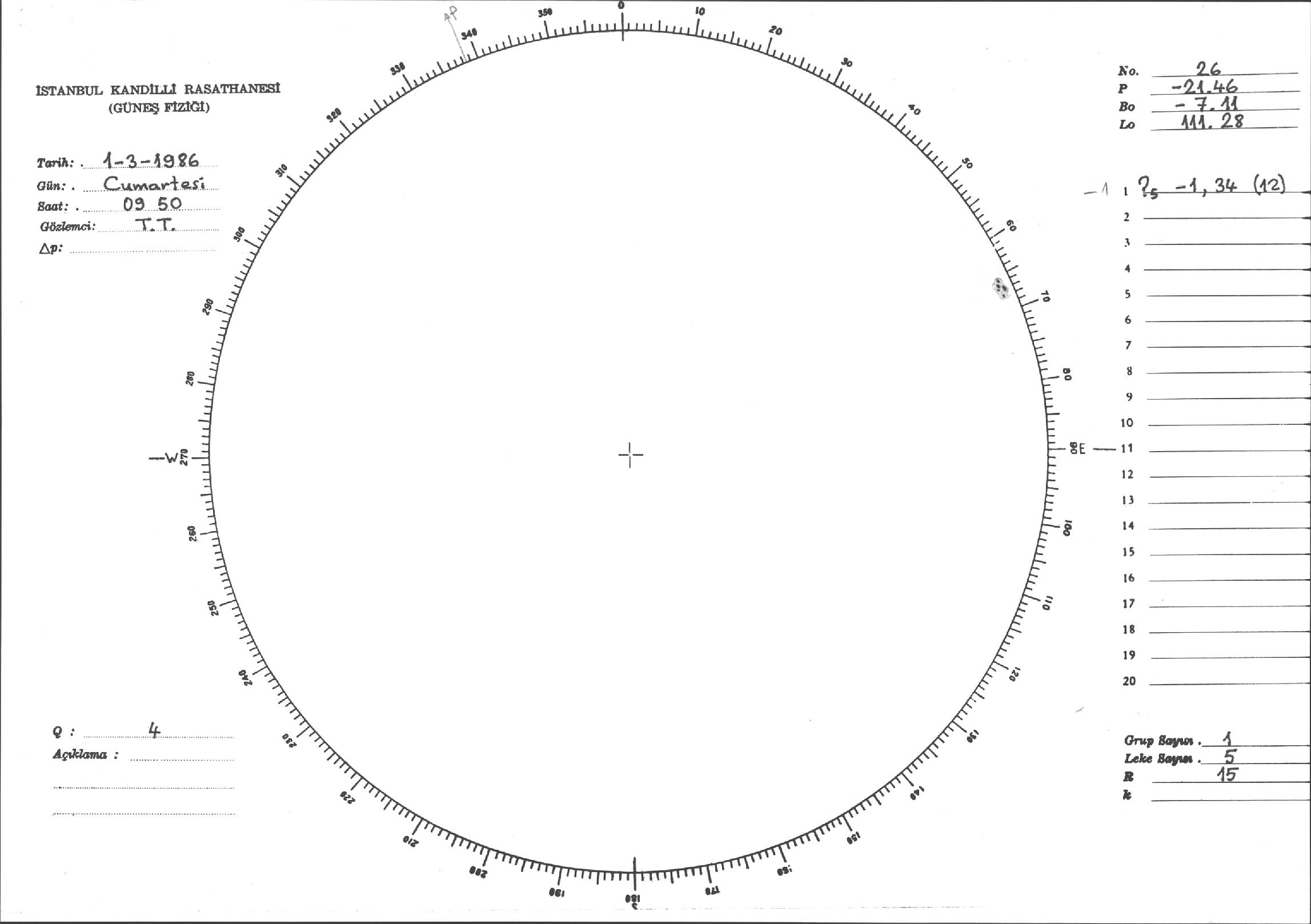 Güneş Lekesi Çizimi - 01.03.1986