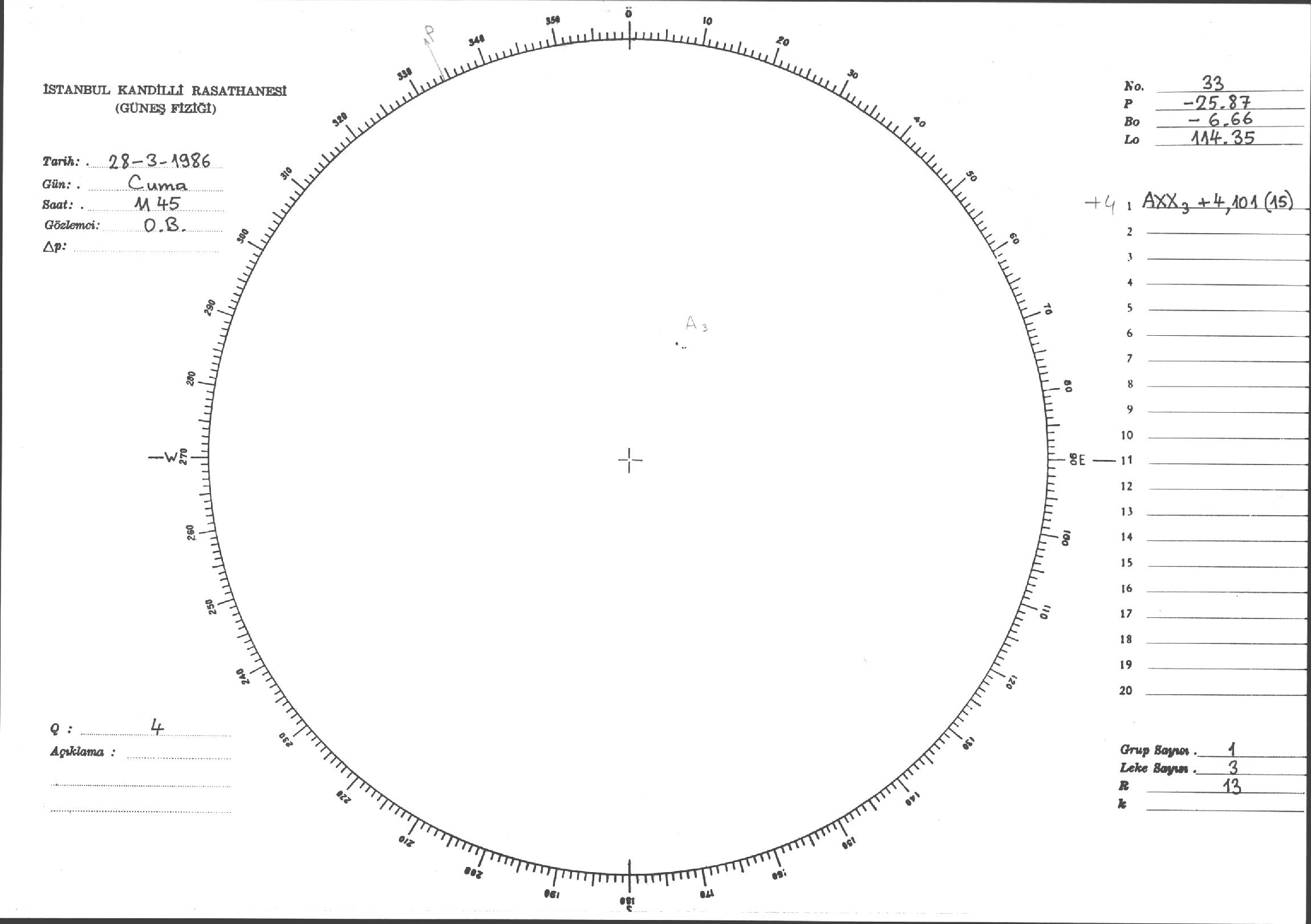 Güneş Lekesi Çizimi - 28.03.1986