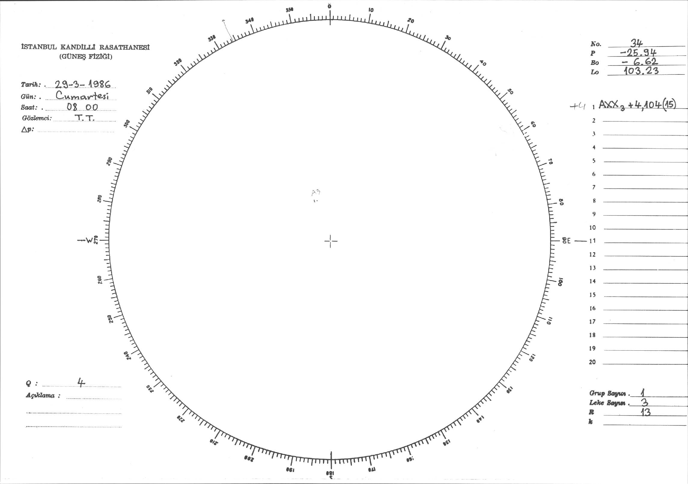 Güneş Lekesi Çizimi - 29.03.1986