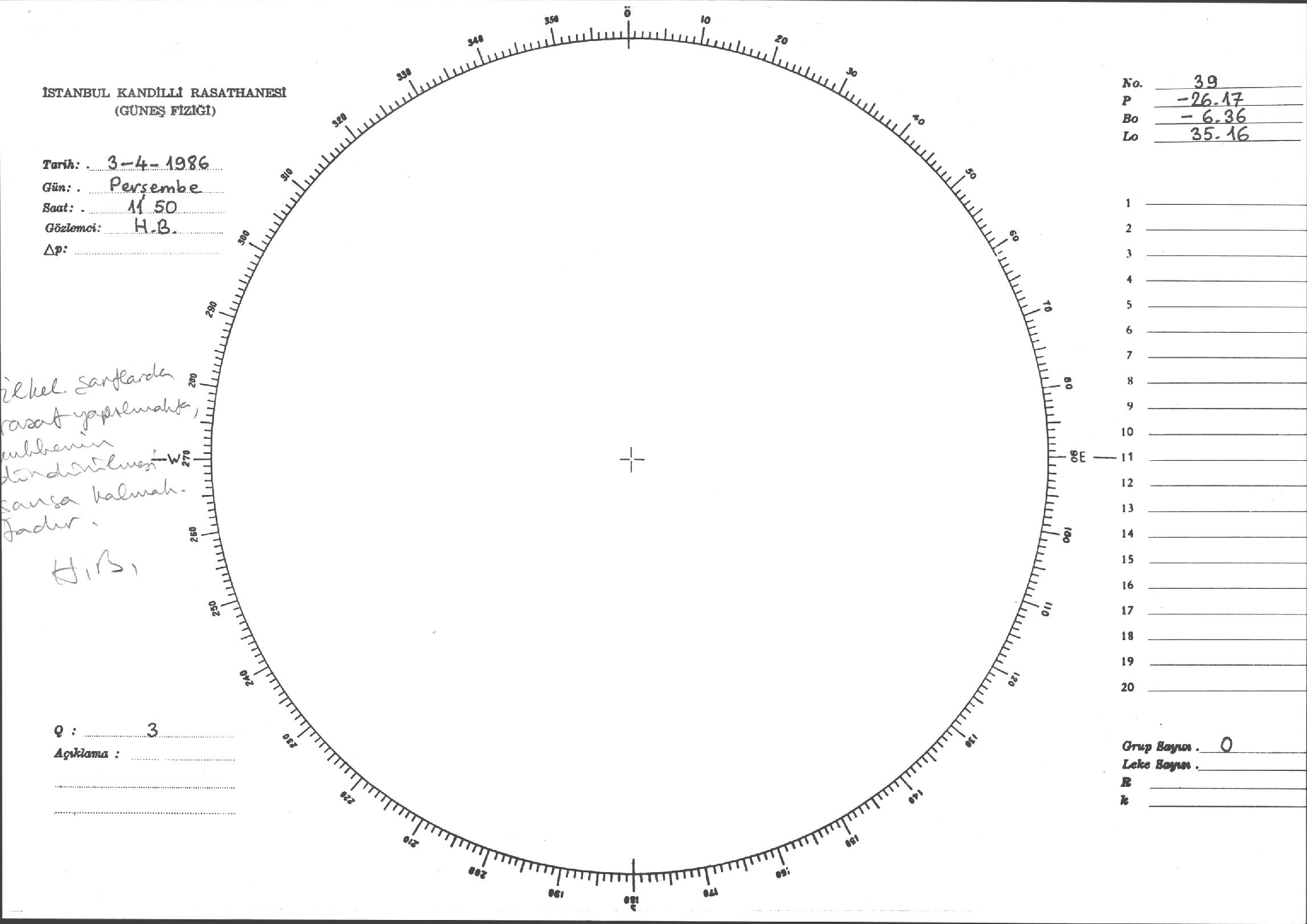 Güneş Lekesi Çizimi - 03.04.1986