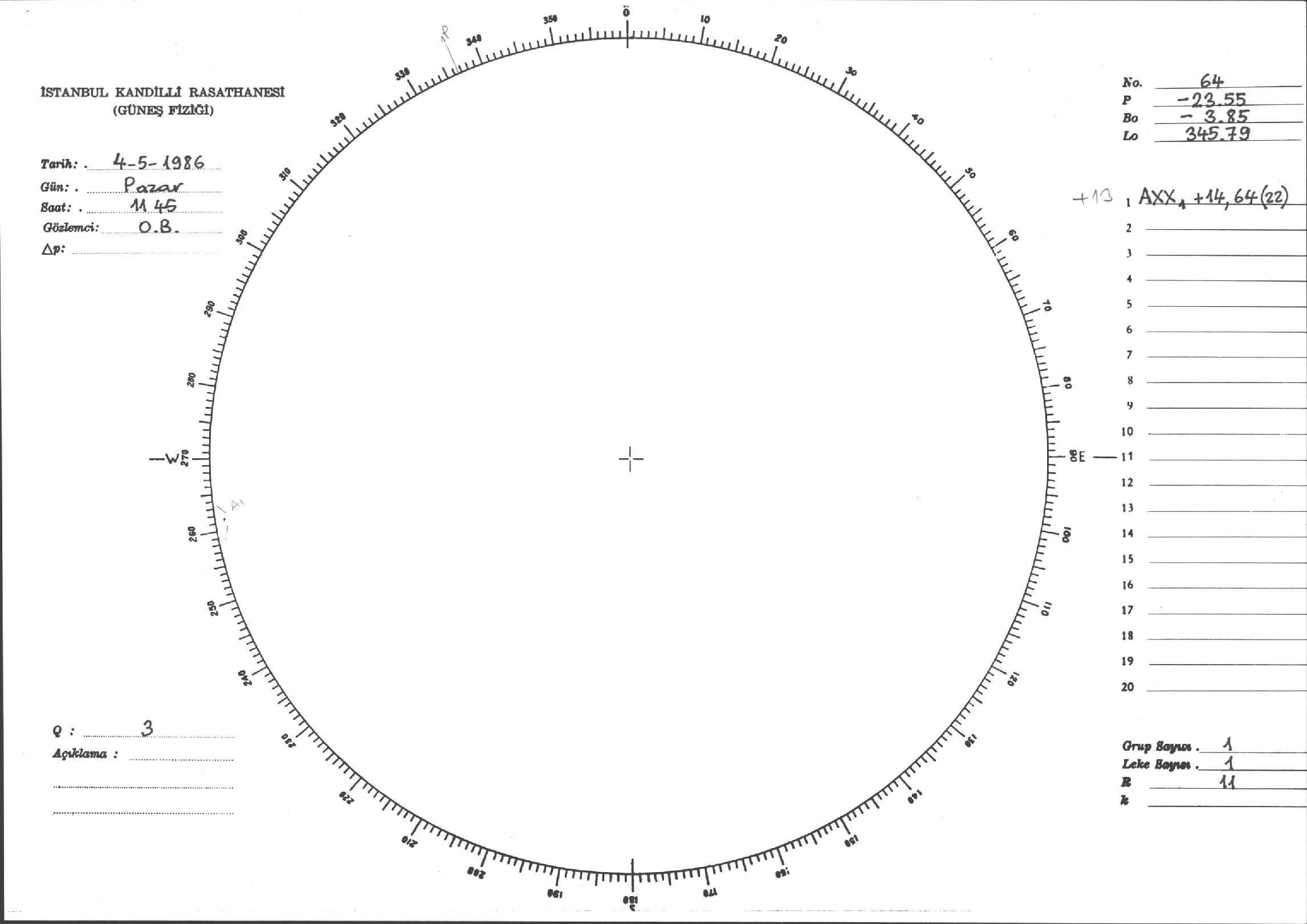 Güneş Lekesi Çizimi - 04.05.1986