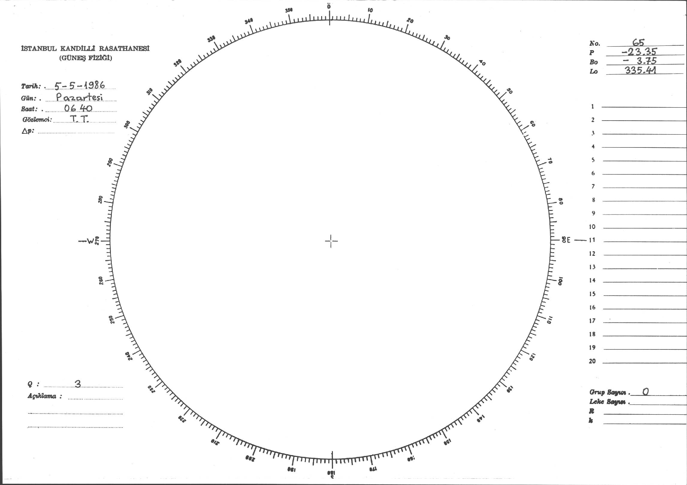 Güneş Lekesi Çizimi - 05.05.1986