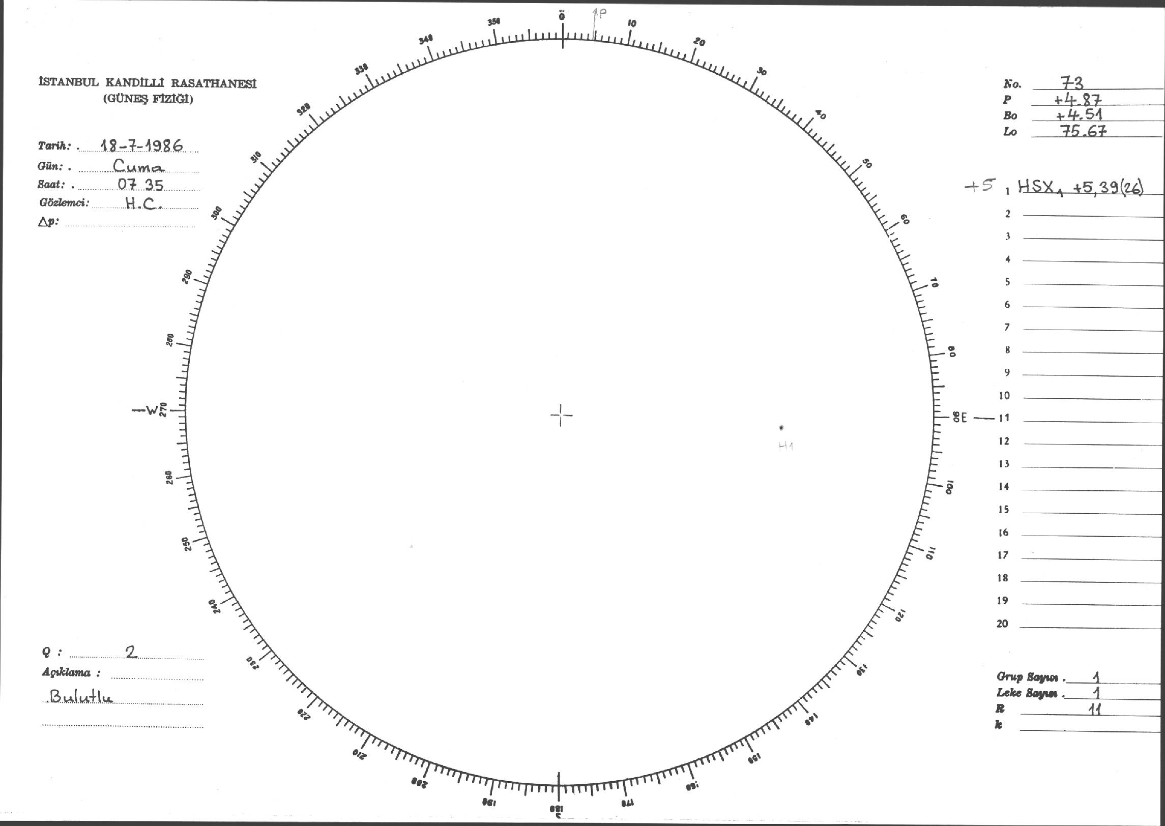 Güneş Lekesi Çizimi - 18.07.1986