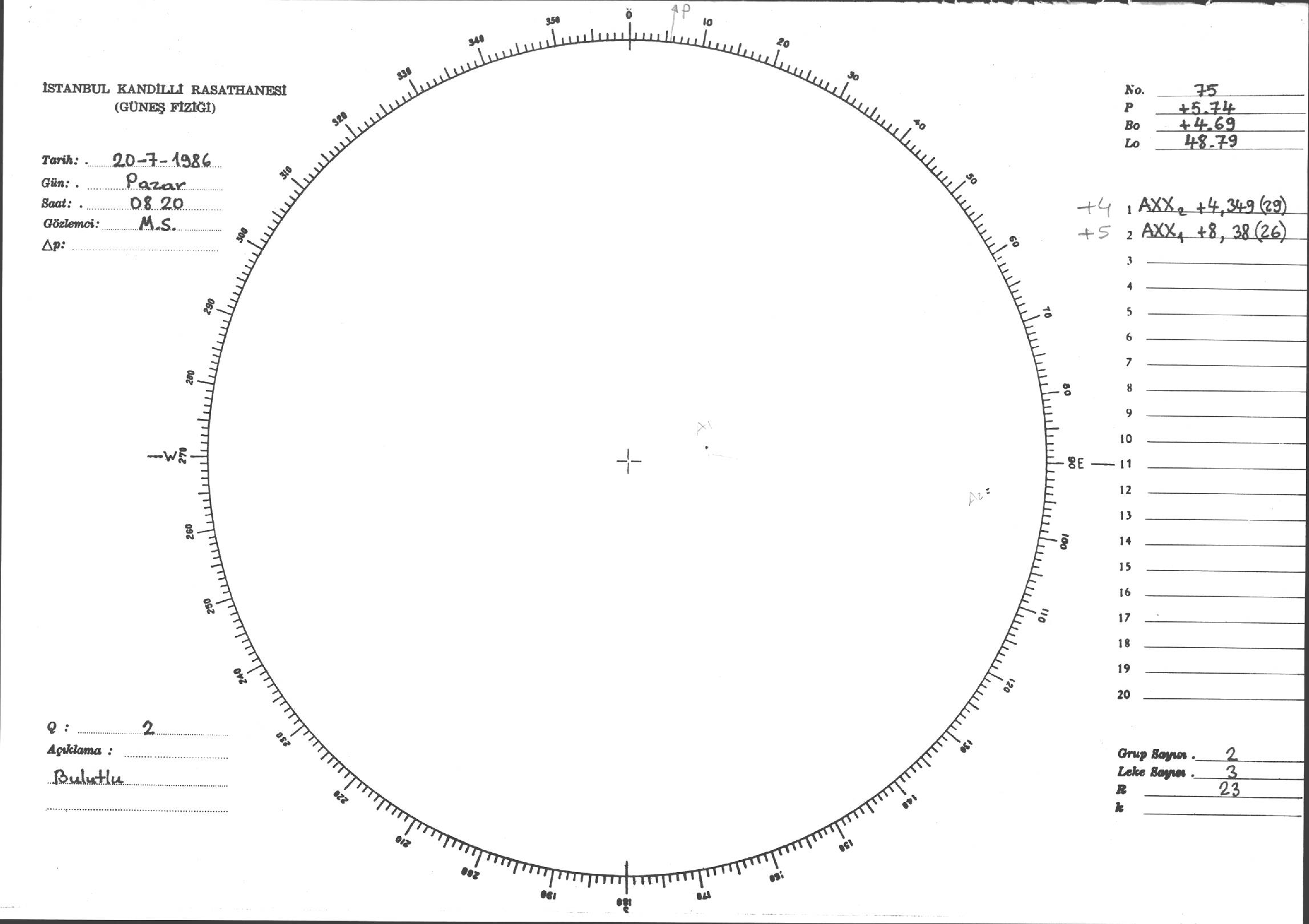 Güneş Lekesi Çizimi - 20.07.1986