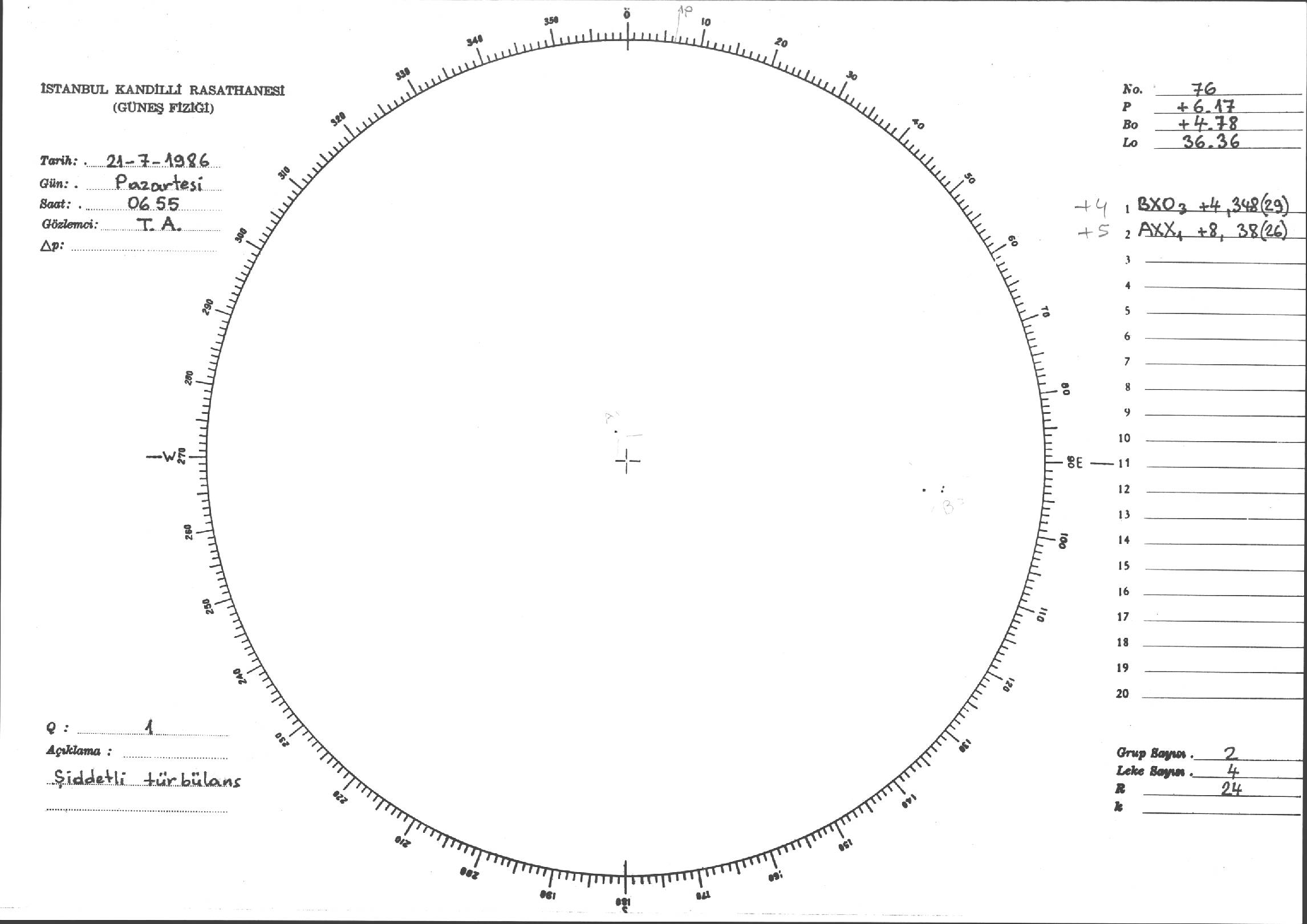 Güneş Lekesi Çizimi - 21.07.1986
